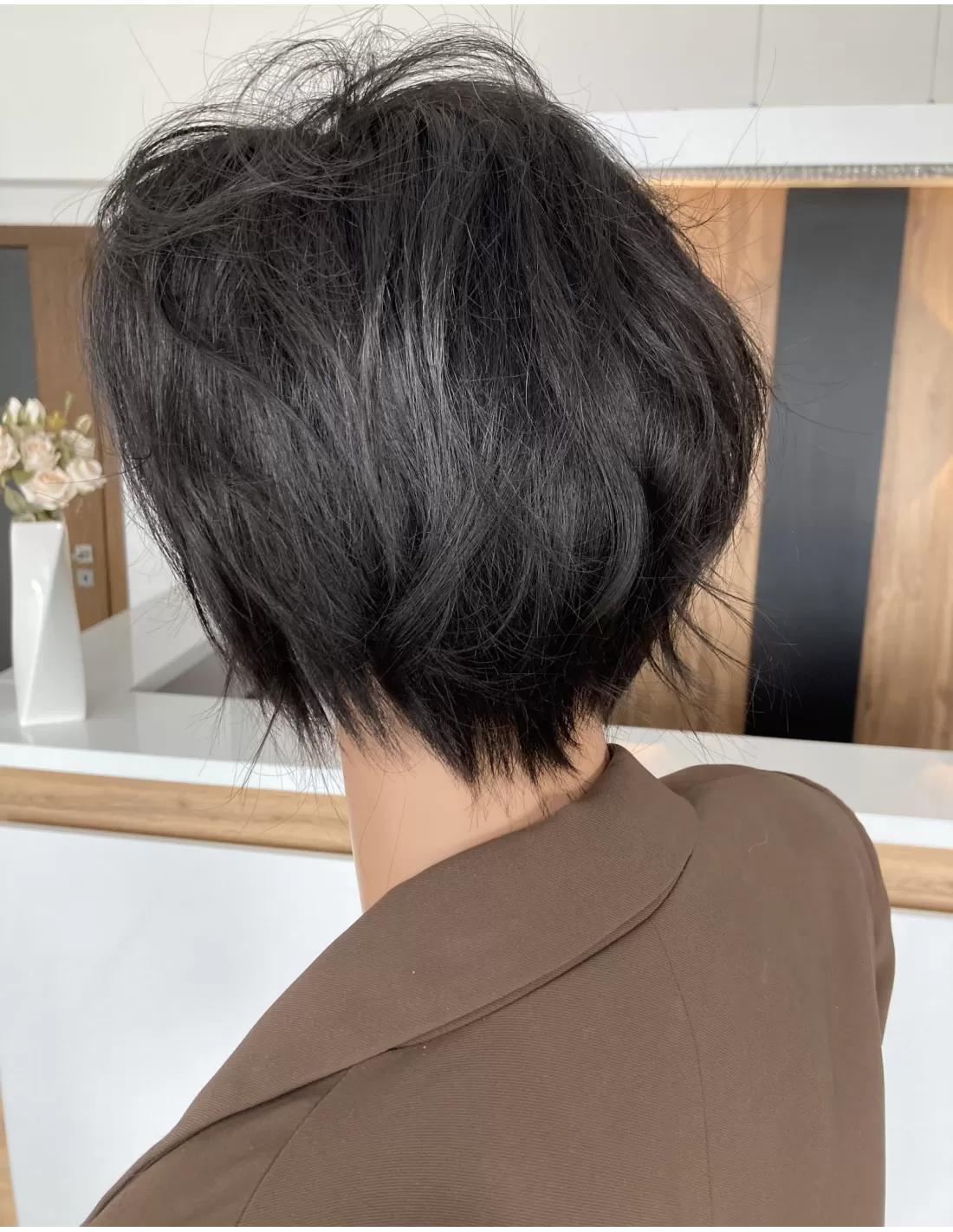 Kris brąz K1-Krótka asymetryczna peruka z włosów naturalnych