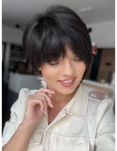 Elastyczny tył zapewnia idealne dopasowanie, a regulacje umożliwiają dostosowanie do indywidualnych preferencji. Kolor bardzo ciemny brąz nadaje peruce wyrafinowanego charakteru, podkreślając jej elegancję., idealna dla pań ceniących wygodę i krótkie fryzury. Peruka Kris to doskonały wybór dla tych Pań , które pragną zachować styl i elegancję w prosty sposób.