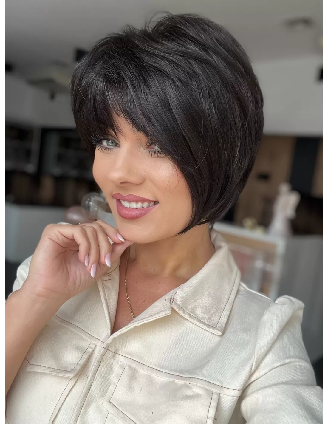 Peruka model Kris brąz K1 to wyjątkowa kompozycja elegancji i komfortu. Wykonana została z włosów naturalnych europejskich. Peruka jest w całości tkana ręcznie , dzięki czemu jest wyjątkowo lekka i komfortowa w noszeniu,