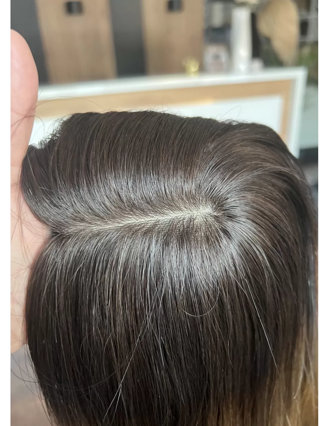 Topper Triss powstał z wyselekcjonowanych, naturalnych włosów w pięknym odcieniu ombre. Triss, to kwintesencja elegancji i luksusu. Jego gładka, jedwabista struktura subtelnie otula fryzurę, dodając jednocześnie wyjątkowego blasku. Każdy pasmo toppera emanuje naturalnym pięknem, ponieważ składa się z autentycznych włosów, co gwarantuje niezrównaną jakość. To idealne rozwiązanie dla tych, którzy pragną osiągnąć perfekcyjny efekt, łączący autentyczność z wyrafinowanym stylem.