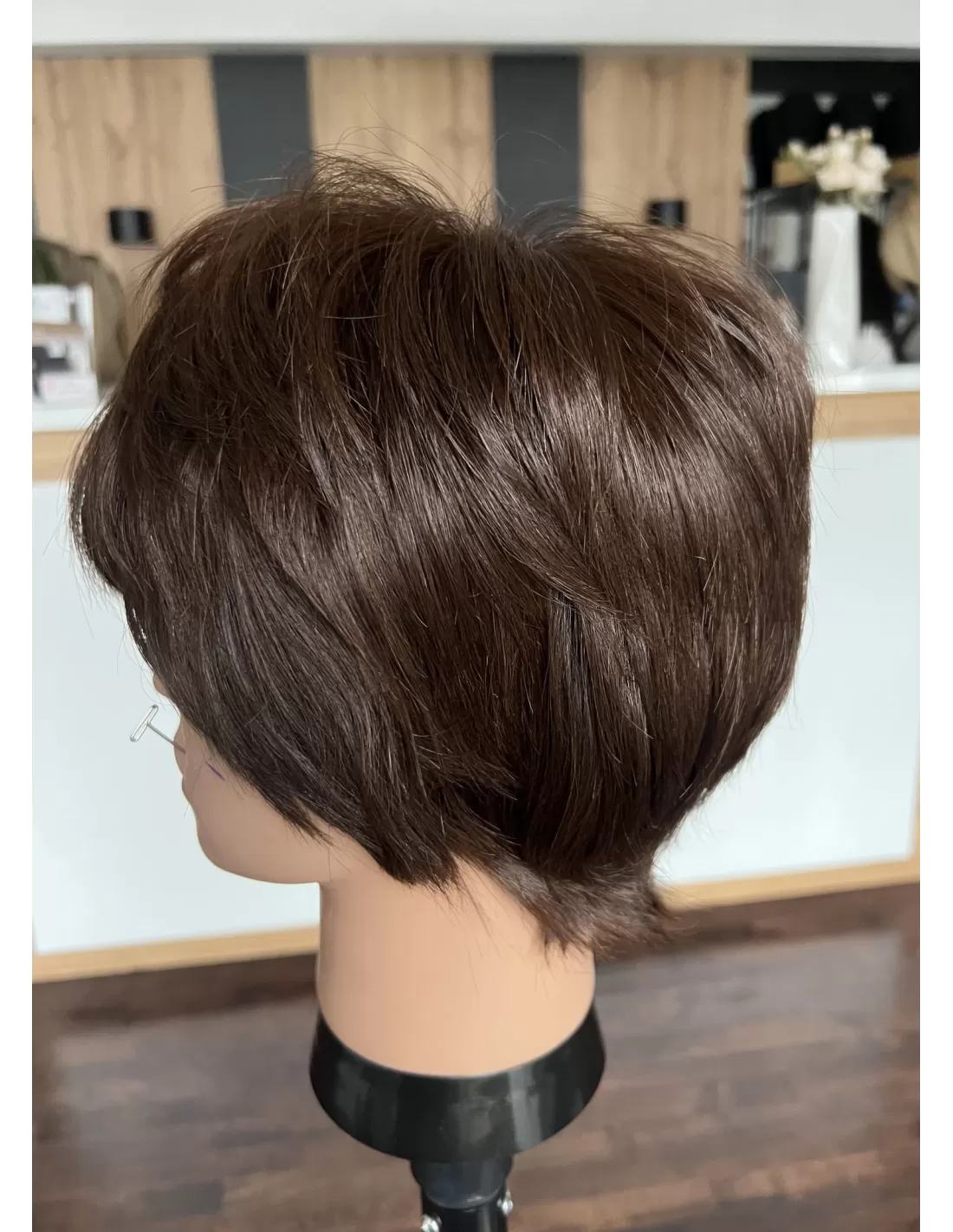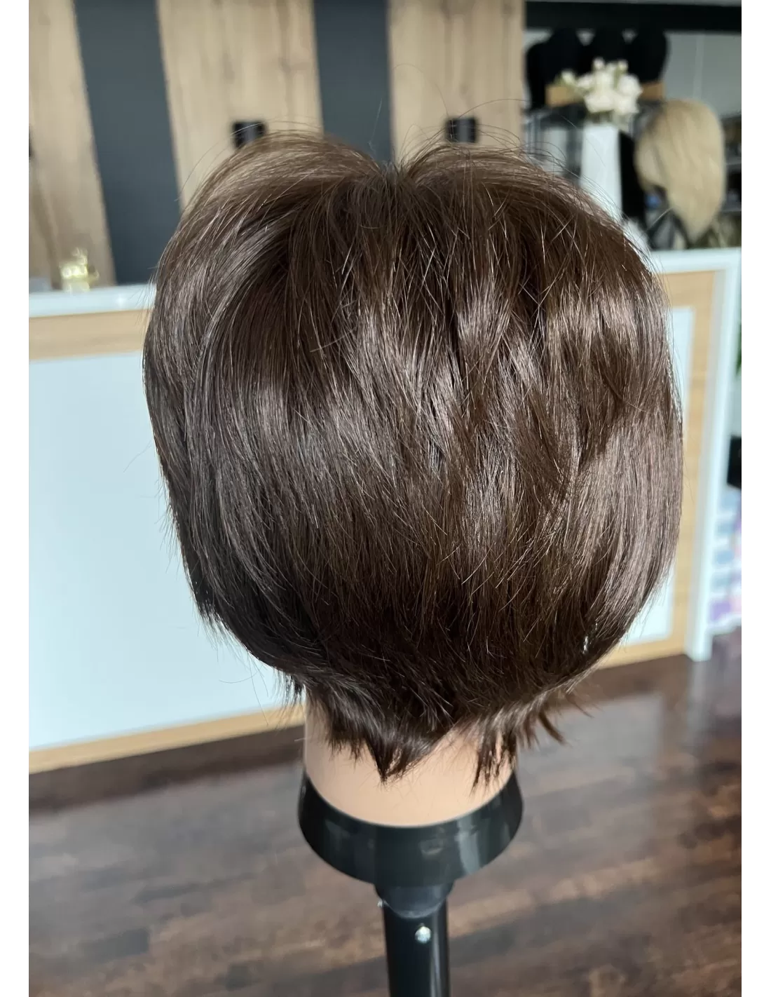 Peruka model Mona to wyjątkowa kompozycja elegancji i komfortu. Wykonana została z włosów naturalnych europejskich. Włosy na peruce są w całości tkane ręcznie , dzięki czemu peruka jest wyjątkowo lekka i komfortowa w noszeniu,