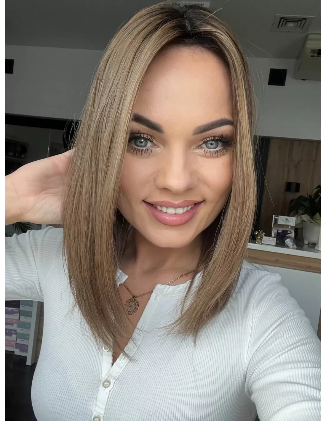 Topper z włosów naturalnych Julia, to wyjątkowy element do Twojej stylizacji. Stworzony został z myślą o zapewnieniu Ci pięknych, gęstych włosów w odcieniach naturalnego brązu w chłodnym odcieniu z ciemniejszym odrostem . To doskonałe rozwiązanie dla tych, którzy pragną uzyskać efekt bujnych włosów, bez konieczności trwałych zmian w fryzurze.
