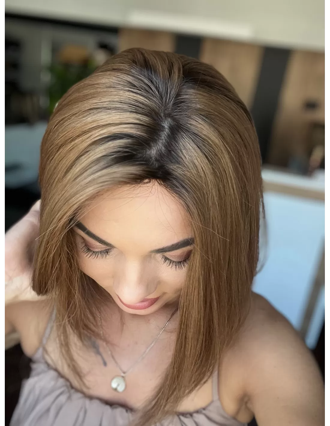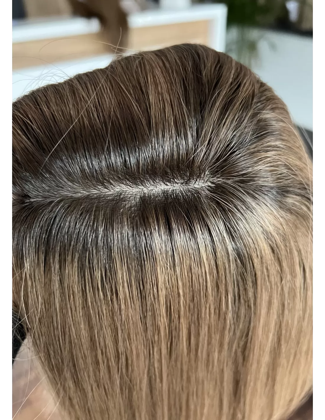 Mikroskóra na czubku peruki dokładnie imituje skórę głowy, co sprawia, że peruka wygląda jeszcze bardziej realistycznie.