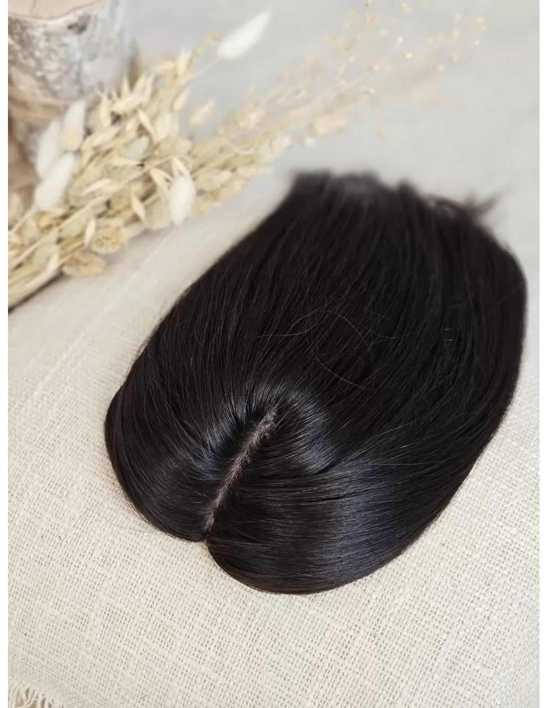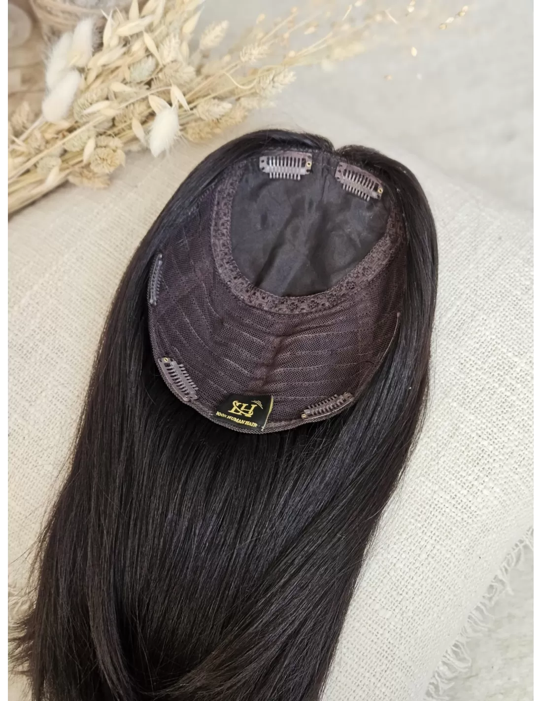 Lady HairTopper Ina wykonany jest z włosów naturalnych o najwyższej jakości VIRGIN. To idealne rozwiązanie dla osób pragnących uzyskać pełny, gęsty i naturalny wygląd swoich włosów. Jego kolor to bardzo ciemny brąz (#1B), co zapewnia elegancki i głęboki wygląd.