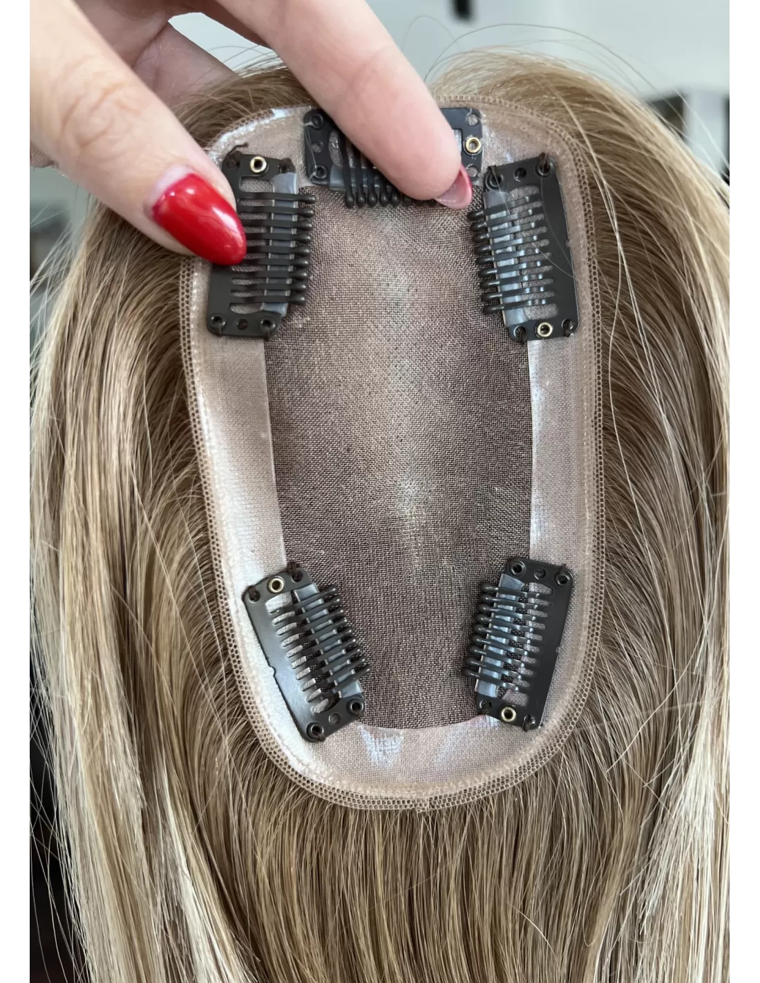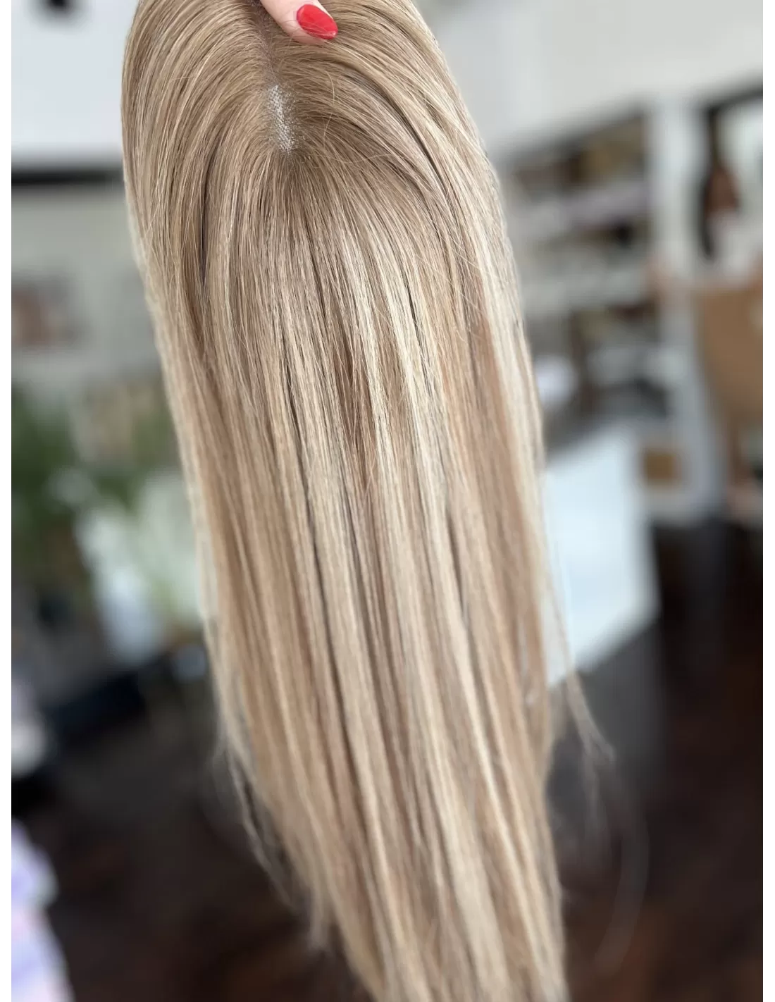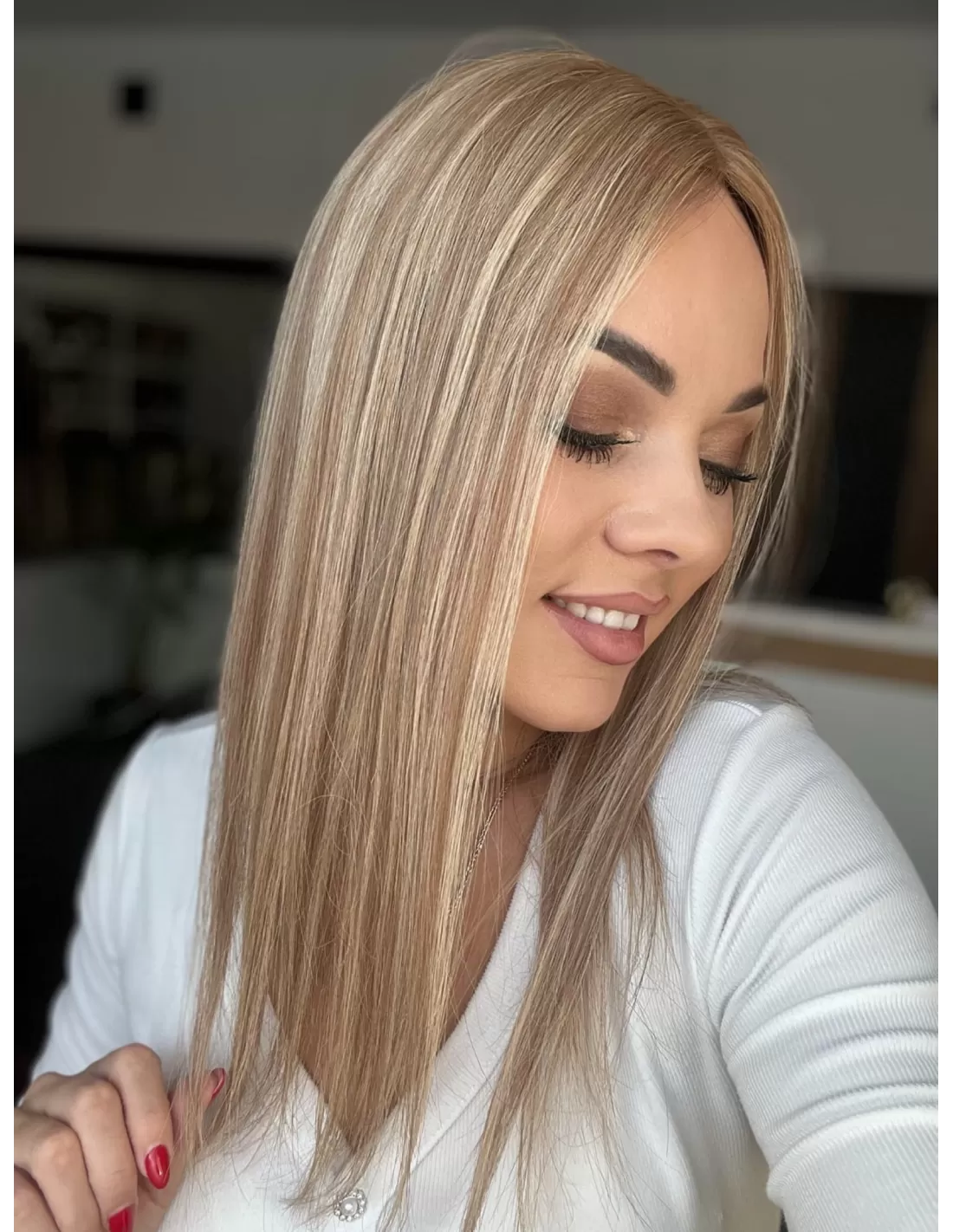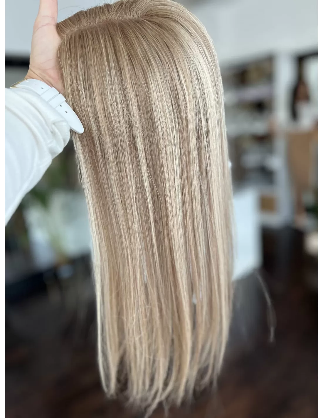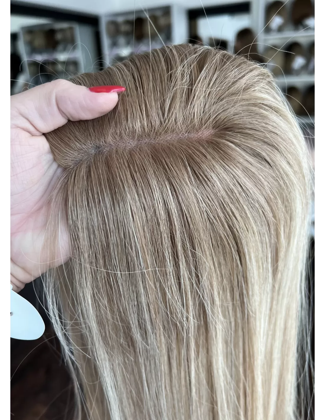 Przedstawiamy mini topper, idealne rozwiązanie dla osób pragnących subtelnie zagęścić przedziałek. Wykonany z naturalnych włosów . Piękny baleyage w beżowych odcieniach blondu nadaje mu naturalnego i eleganckiego charakteru