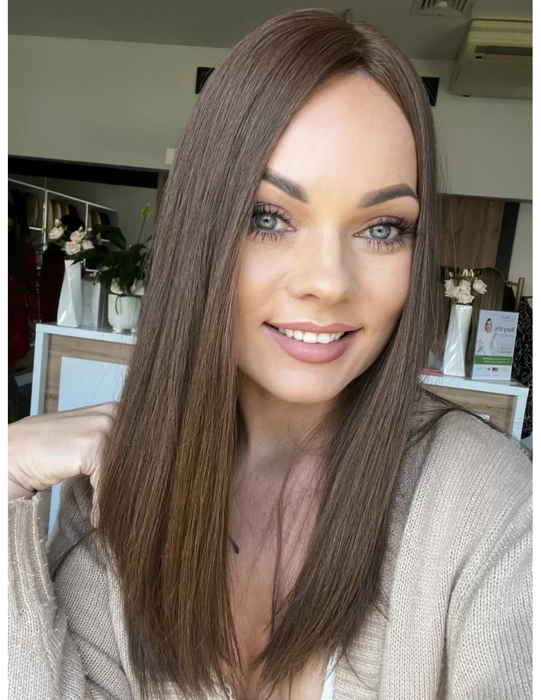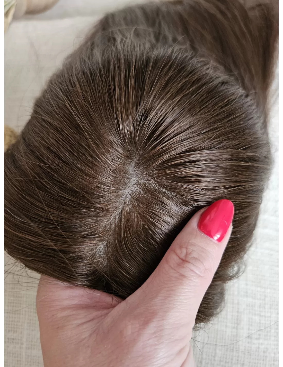 Topper Kadi wykonany został z najwyższej jakości naturalnych włosów europejskich o naturalnym odcieniu brązu. Dzięki temu, nie tylko struktura włosów, ale także kolor są absolutnie zgodne z naturalnym wyglądem. To oznacza, że możesz cieszyć się piękną fryzurą, która jest w pełni spersonalizowana do twojego stylu i koloru włosów. Naturalny brąz to odcień, który sprawia, że topper wygląda niezwykle autentycznie, a jednocześnie nadaje ci pewność siebie, wiedząc, że twoja fryzura zawsze prezentuje się doskonale.
