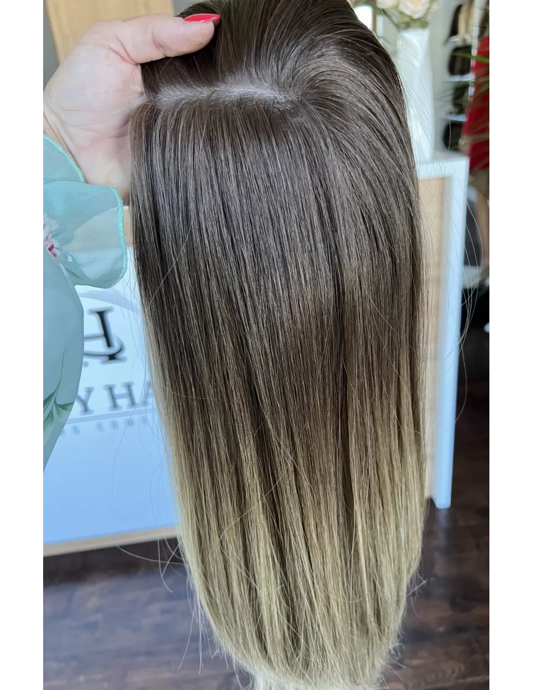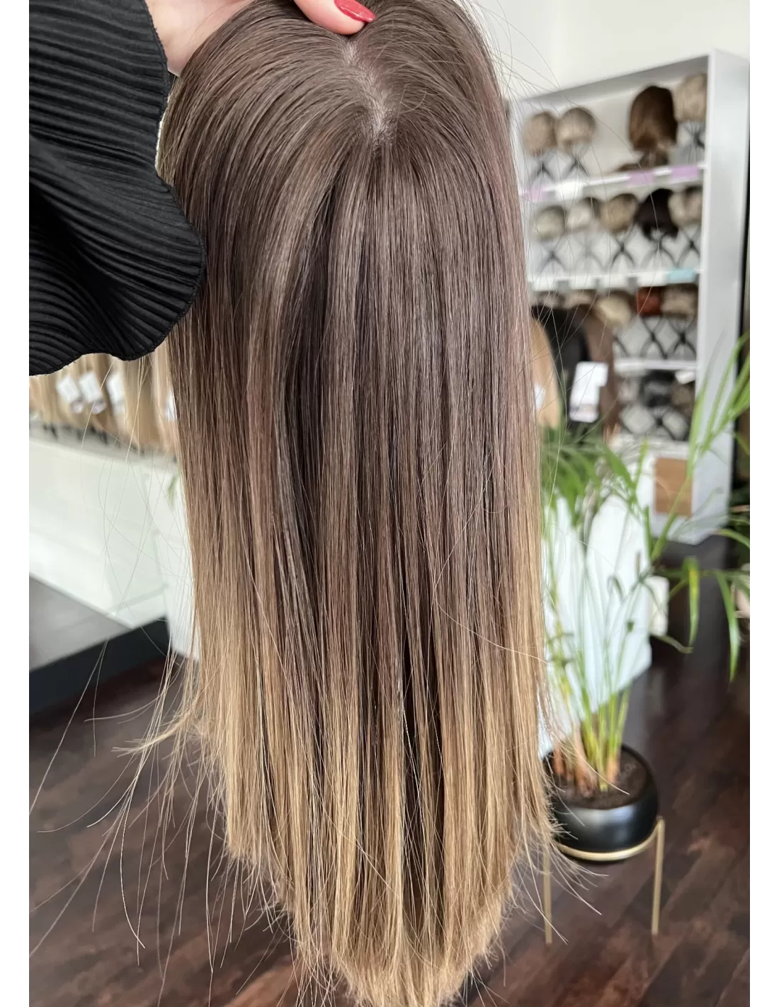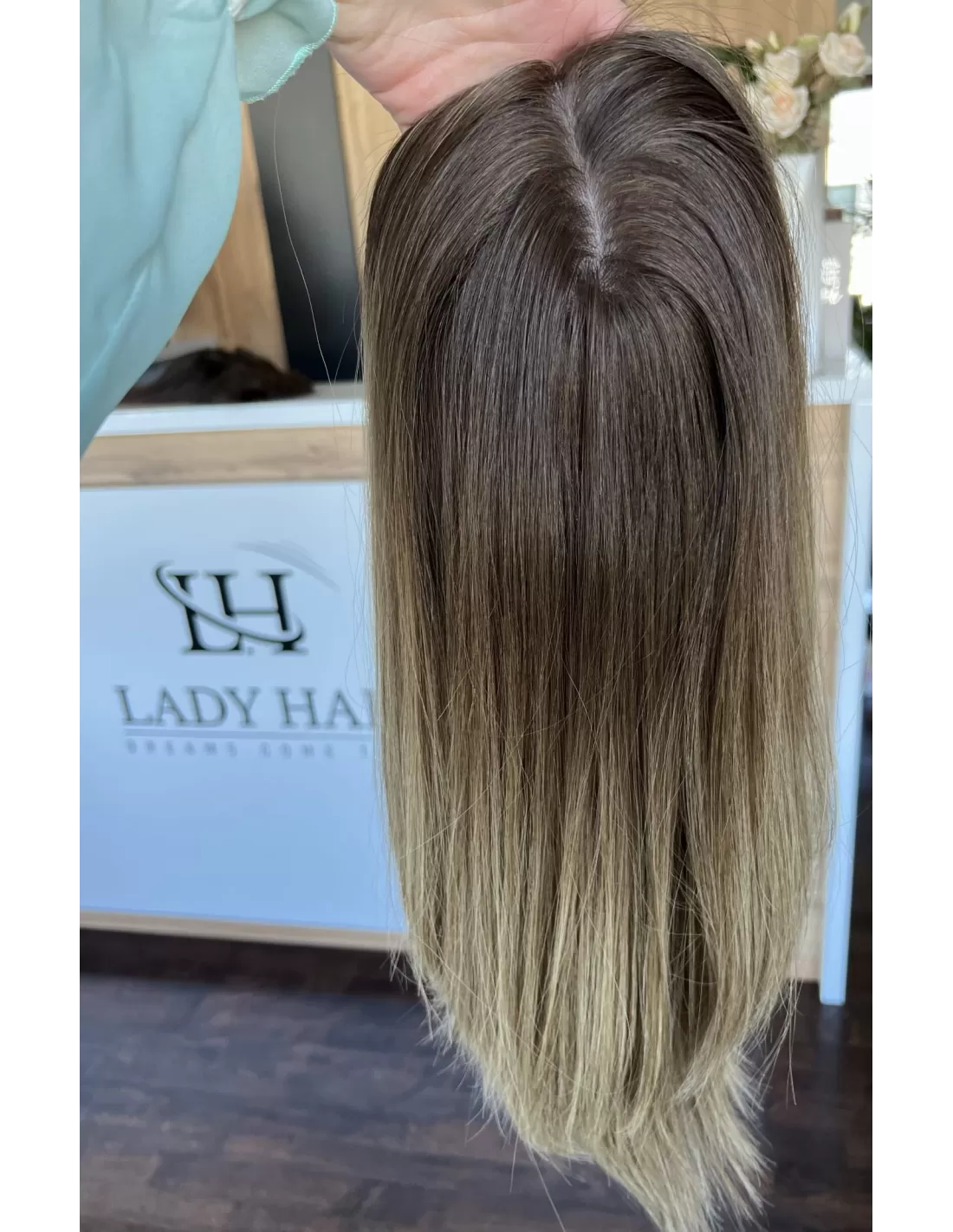 Kolor toppera to połączenie średniego brązu z bardzo subtelnym przejściem w jaśniejszą tonacje blondu.