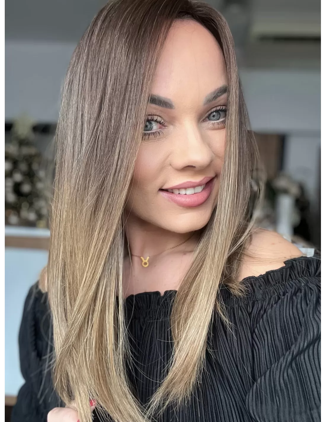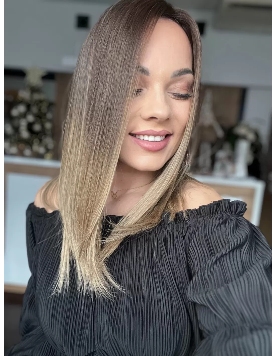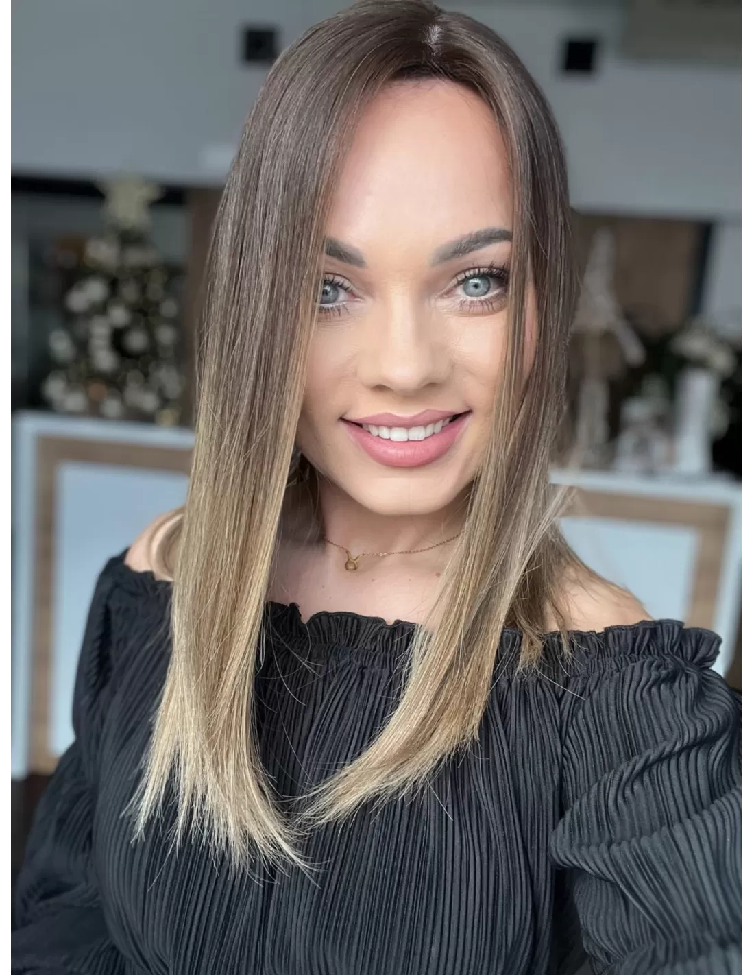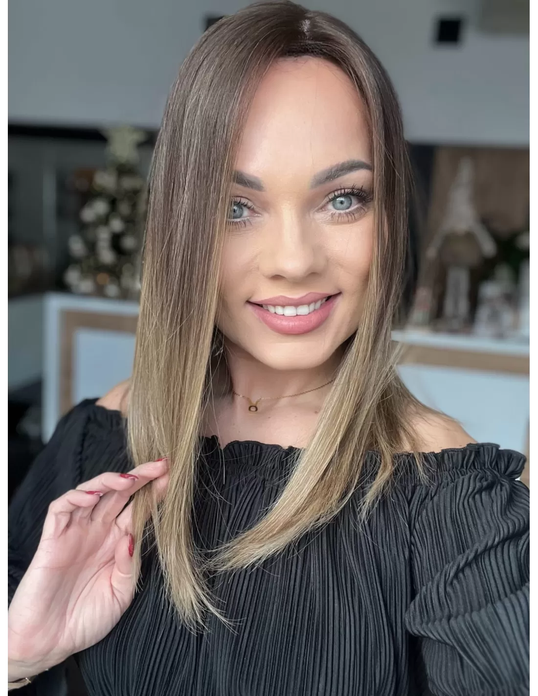 Kolor toppera to połączenie średniego brązu z bardzo subtelnym przejściem w jaśniejszą tonacje blondu.
