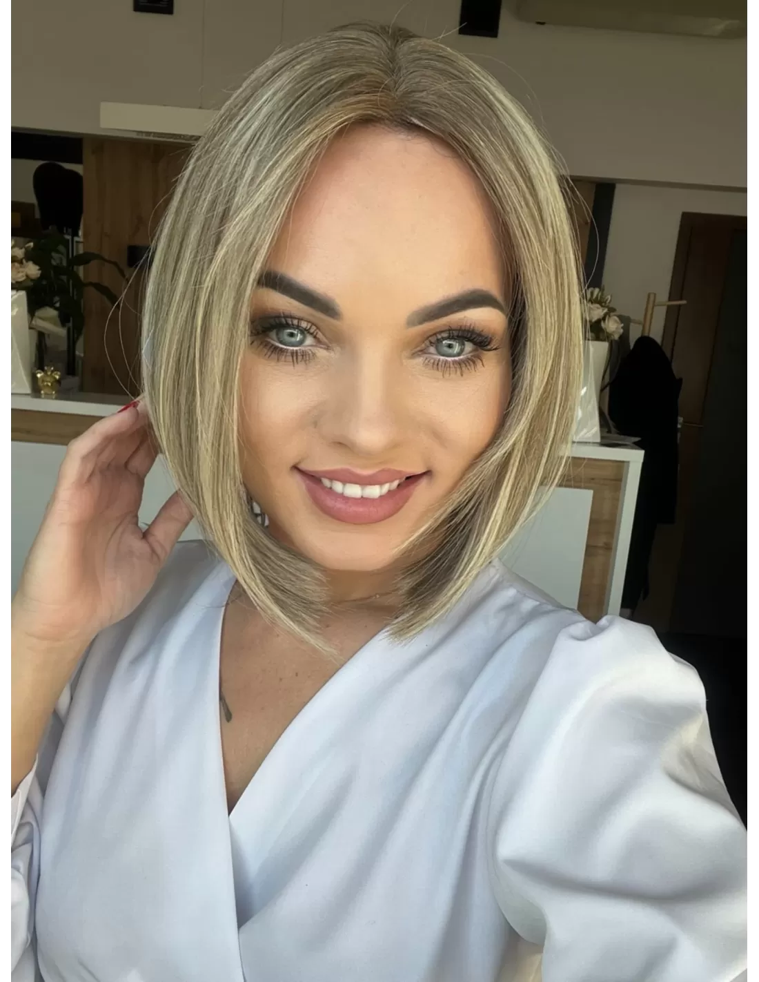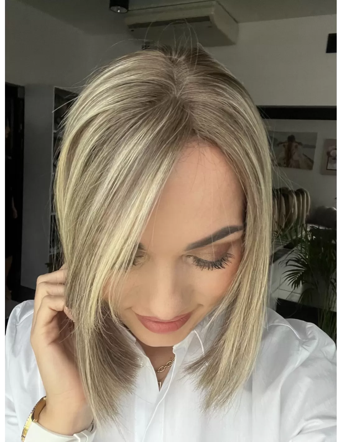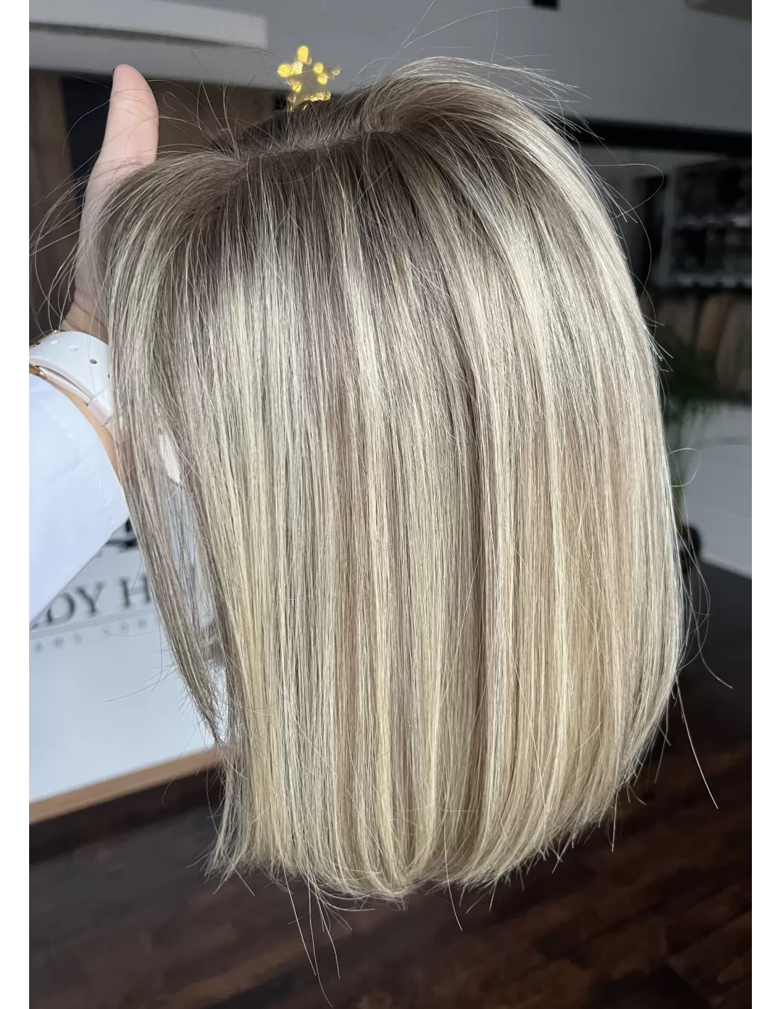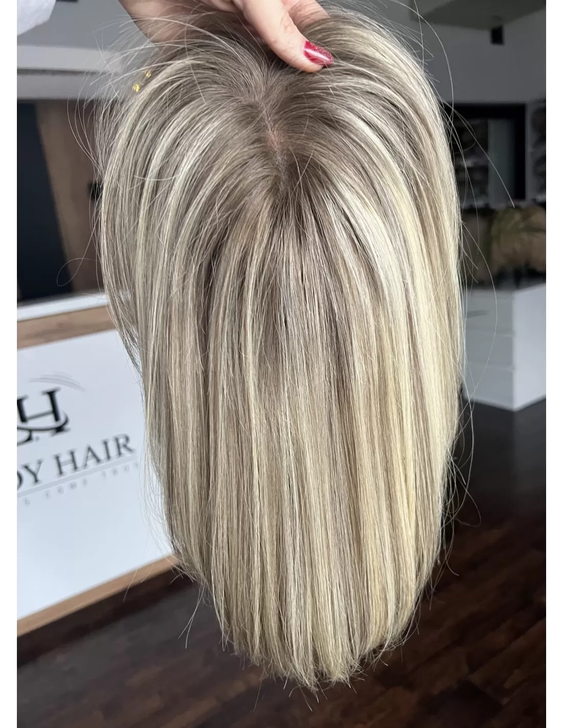 Topper Selene 8C to arcydzieło najwyższej jakości, stworzone z naturalnych włosów, które wprowadzą do Twojej stylizacji nowy wymiar elegancji. Kolorystyka to baleyage blond w chłodnym odcieniu, co nadaje włosom delikatny i naturalny blask. Odrost w kolorze ciemnego chłodnego blondu dodaje fryzurze kontrastu i charakteru.