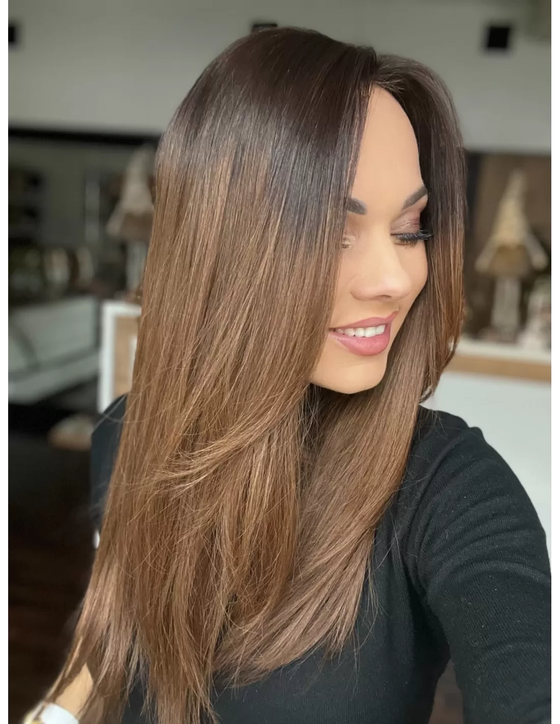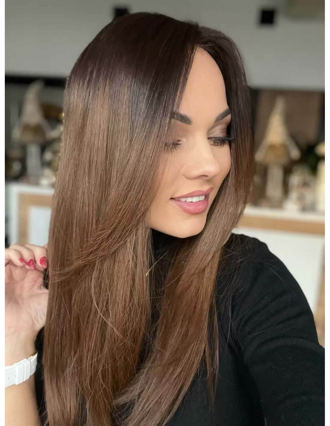 Lady HairTopper Teresa powstał z wyselekcjonowanych, naturalnych włosów w pięknym odcieniu ombre. Teresa, to kwintesencja elegancji i luksusu. Jego gładka, jedwabista struktura subtelnie otula fryzurę, dodając jednocześnie wyjątkowego blasku. Każdy pasmo toppera emanuje naturalnym pięknem, ponieważ składa się z autentycznych włosów, co gwarantuje niezrównaną jakość. To idealne rozwiązanie dla tych, którzy pragną osiągnąć perfekcyjny efekt, łączący autentyczność z wyrafinowanym stylem.