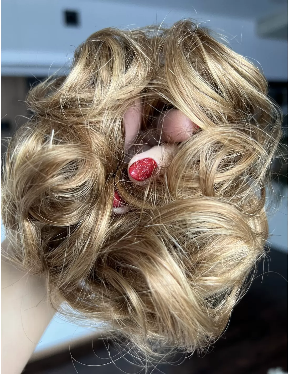 Gumka z włosów naturalnych ciepły jasny baleyage brąz