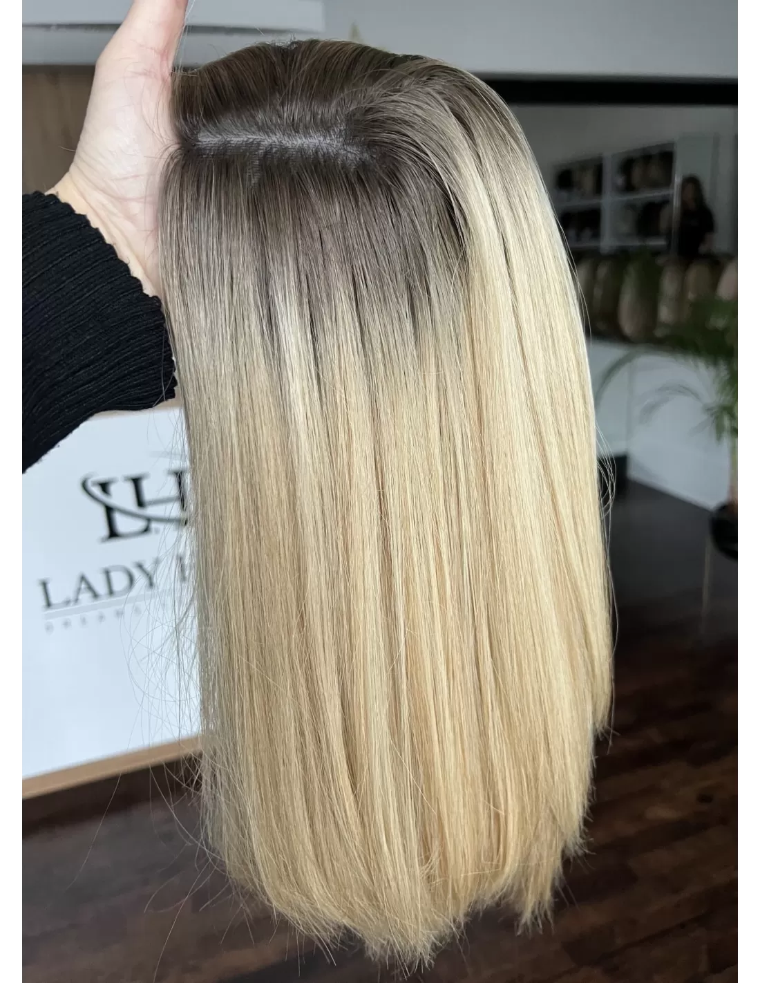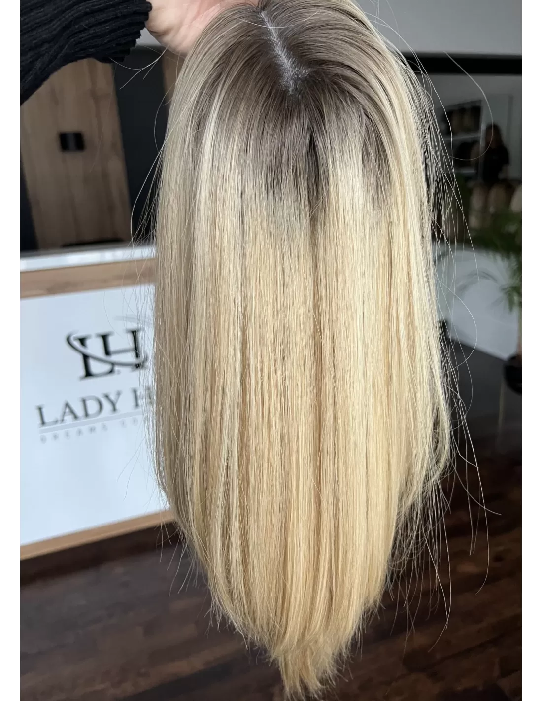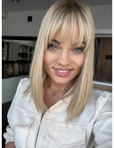 Topper Aida to niezwykła eksplozja naturalnego piękna, stworzona z najwyższej jakości włosów. Jego blond kryje w sobie subtelną magię baleyage w ciepłych odcieniach blondu, która dodaje fryzurze subtelnego blasku. Odrost w odcieniu delikatnego brązu to nie tylko delikatny kontrast, ale także wyraz elegancji.