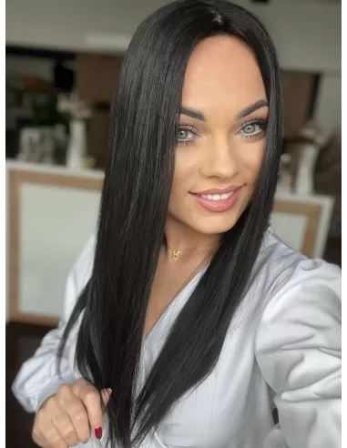"FREYA 50-55 CM" DŁUGI CZARNY TOPPER Z WŁOSÓW NATURALNYCH
