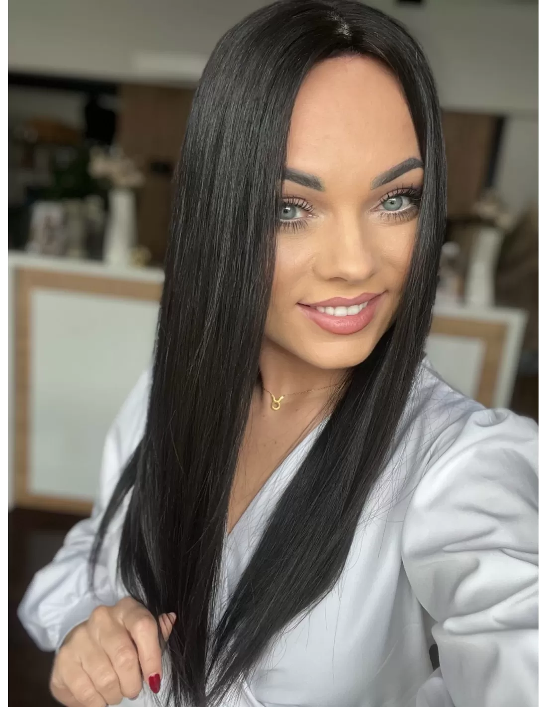 Włosy można stylizować na różne sposoby-kręcić ,prostować a także zmieniać dowolnie przedziałek/