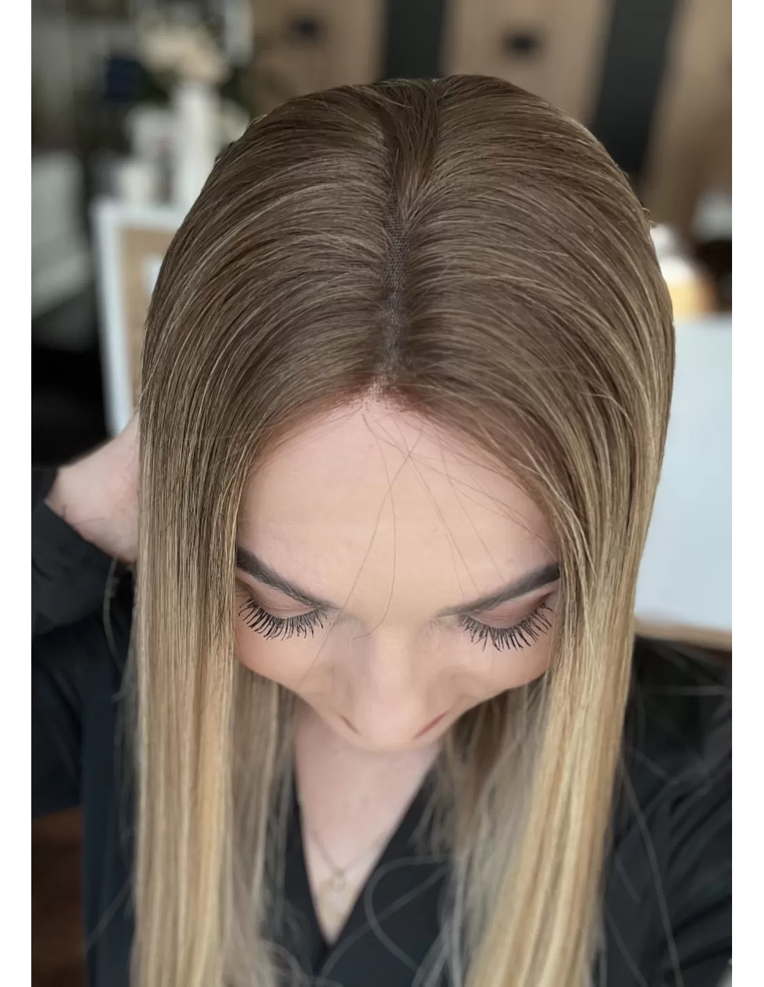 Przejście między skórą a peruką jest niemal niewidoczne, co daje wrażenie włosów wyrastających prosto ze skóry głowy.