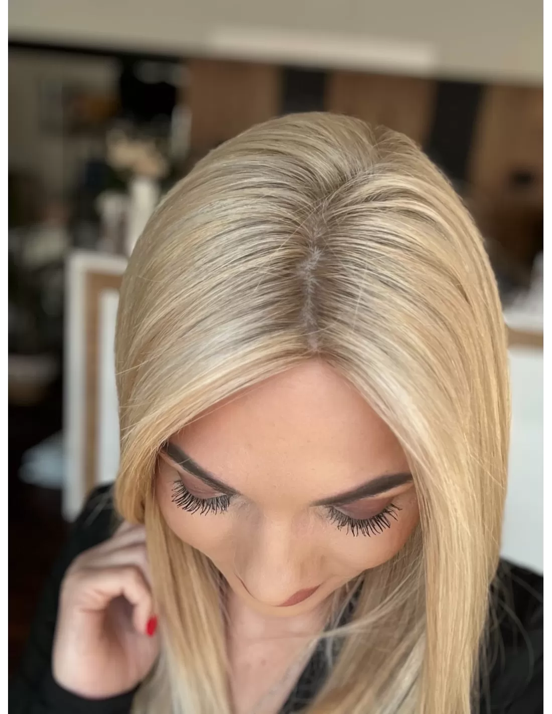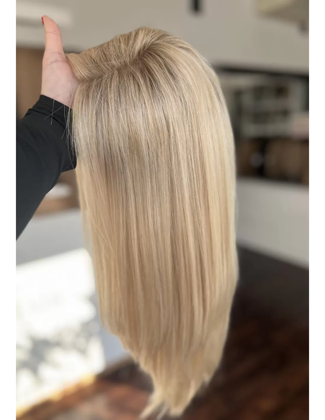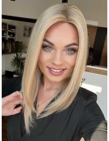 Odkryj wyjątkową perukę wykonaną z najwyższej jakości włosów naturalnych, która łączy w sobie elegancję, komfort i doskonałe dopasowanie. Delikatny odcień jasnego piaskowego blondu został wzbogacony subtelnym odrostem, nadając fryzurze niezwykle naturalny i harmonijny wygląd. Dodatkowo, jaśniejsze refleksy dodają peruce głębi i lekkości, sprawiając, że wygląda ona jak naturalnie rozświetlone słońcem włosy.