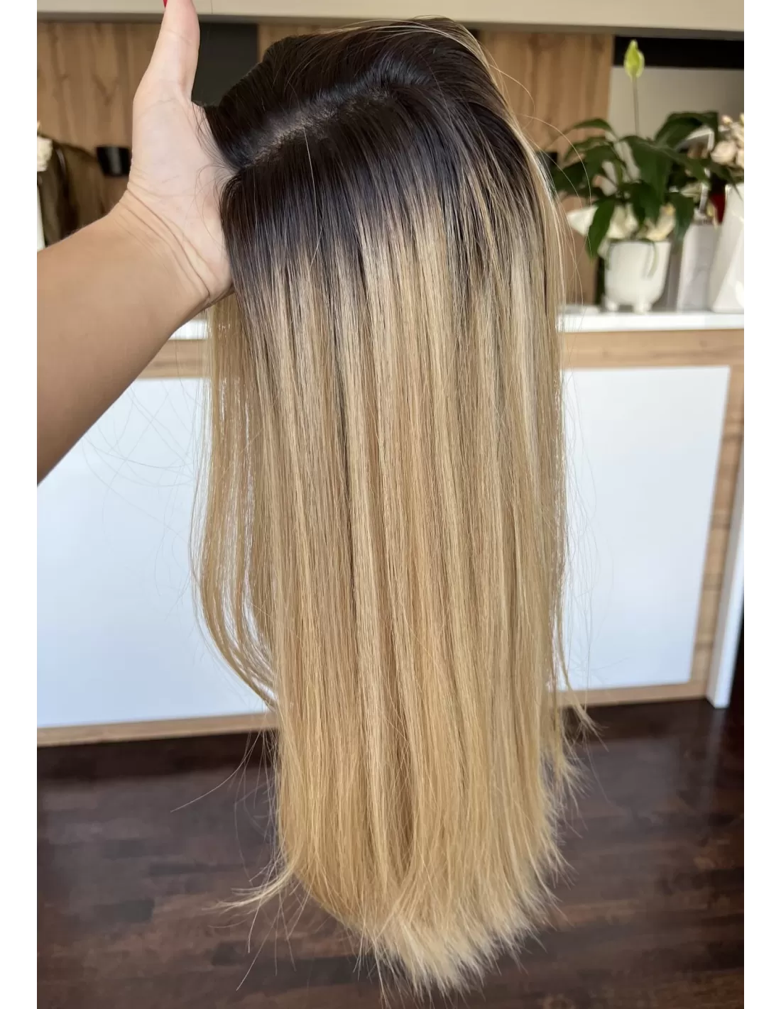 Dzięki precyzyjnemu wykonaniu, ten topper nie tylko doskonale przylega do głowy, ale także pozwala na swobodne układanie włosów, tworząc efektowną fryzurę. Leila jest nie tylko wyjątkowa wizualnie, ale również trwała i łatwa w utrzymaniu. Odkryj nowe możliwości stylizacji z tym topperem, który emanuje naturalnym pięknem i subtelnością baleyage, podkreślając Twoją unikalność.