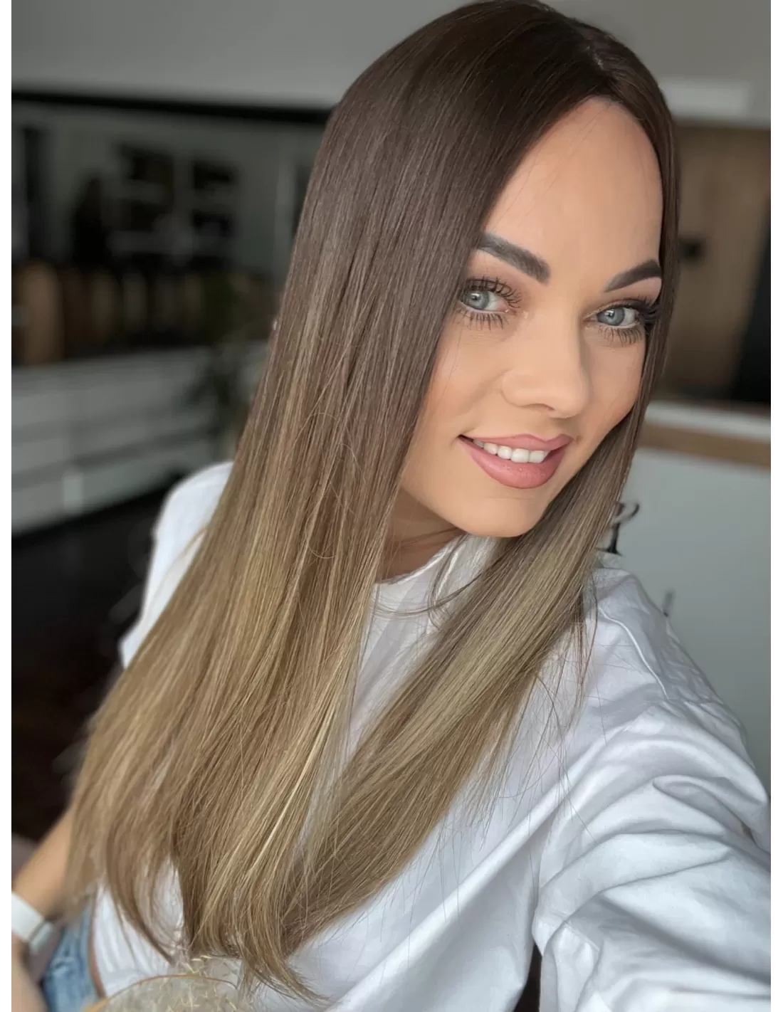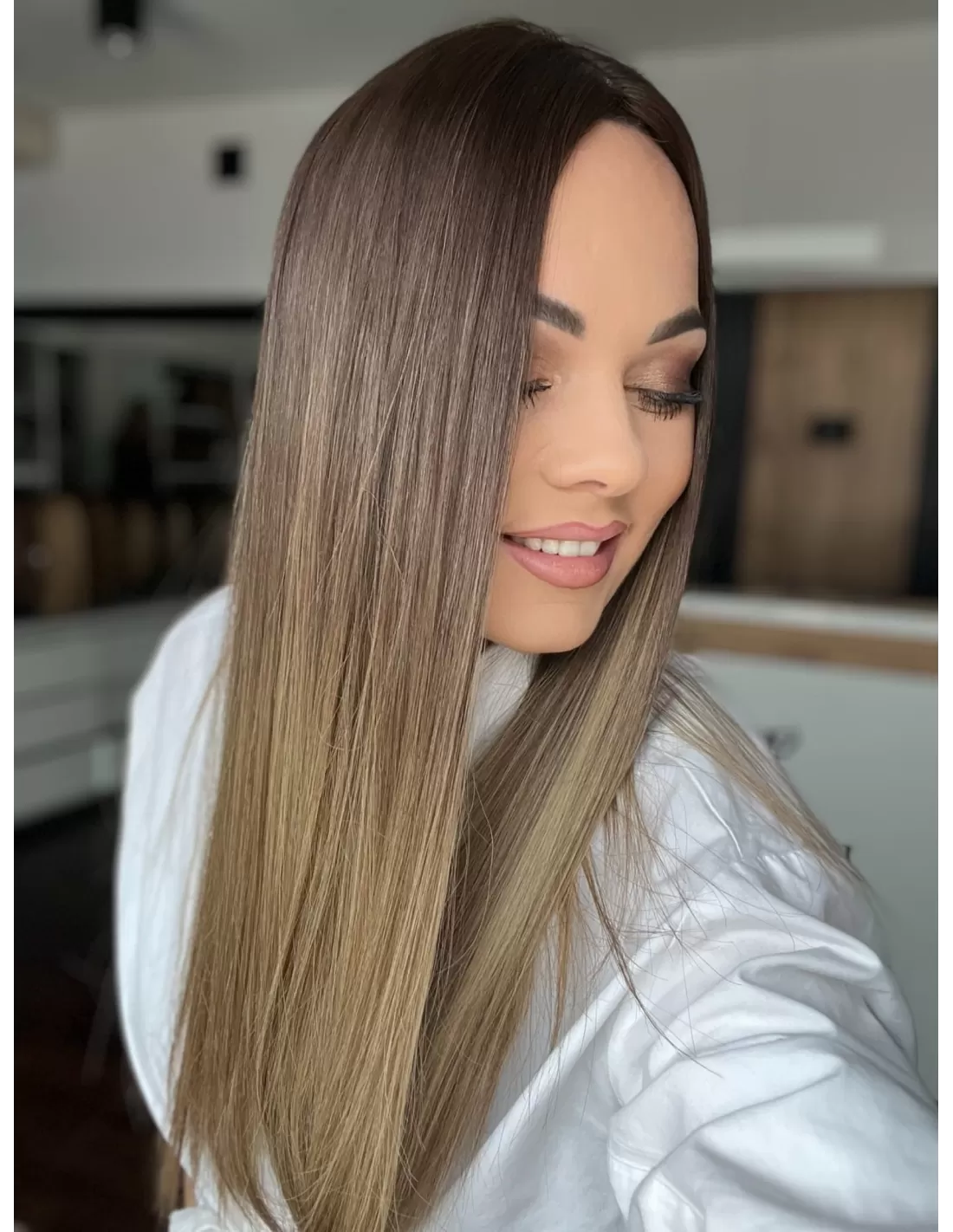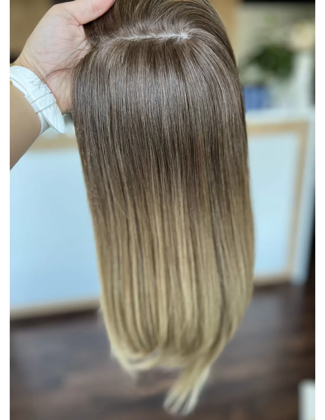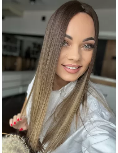 Kolor toppera to połączenie średniego brązu z bardzo subtelnym przejściem w jaśniejszą tonacje blondu.