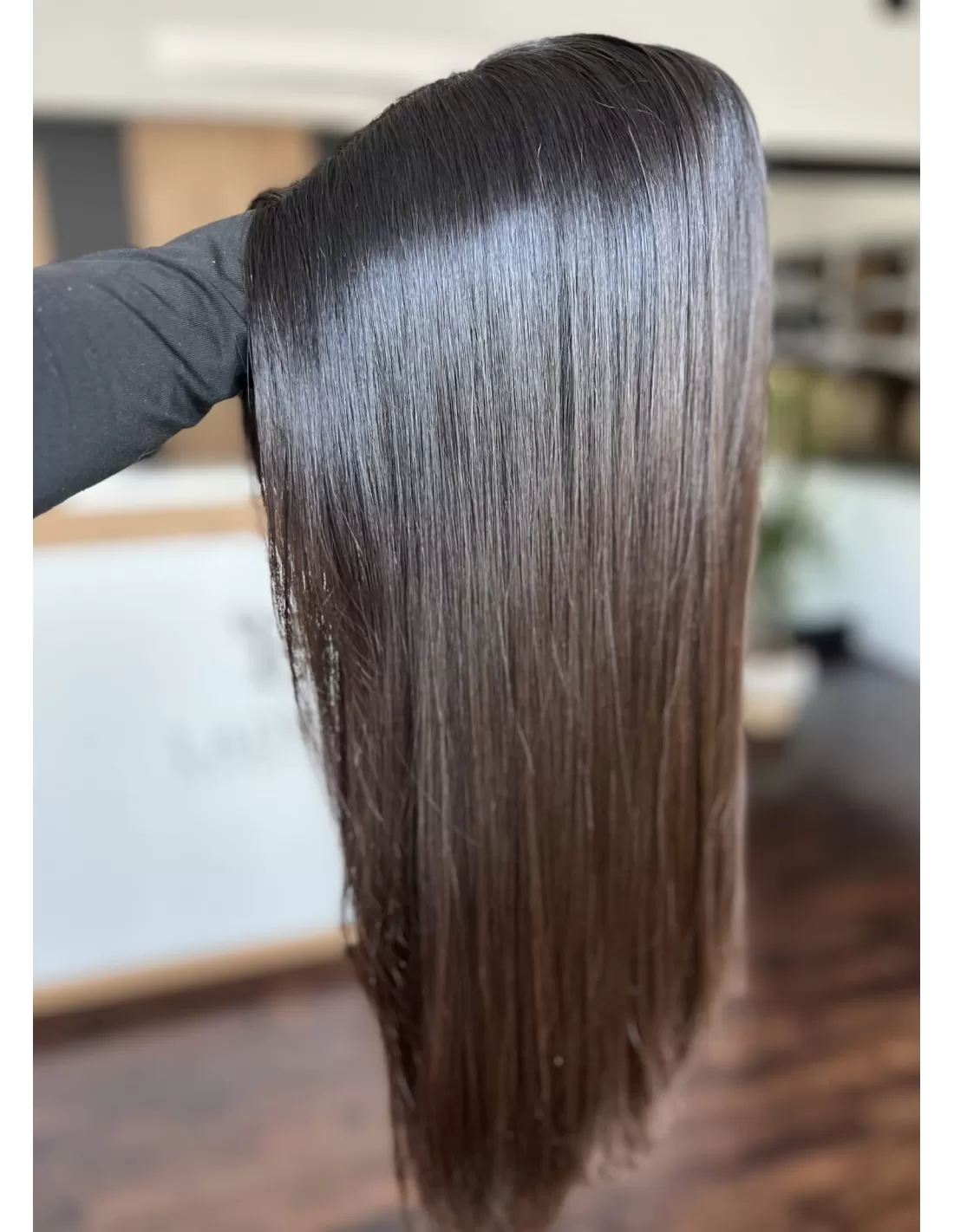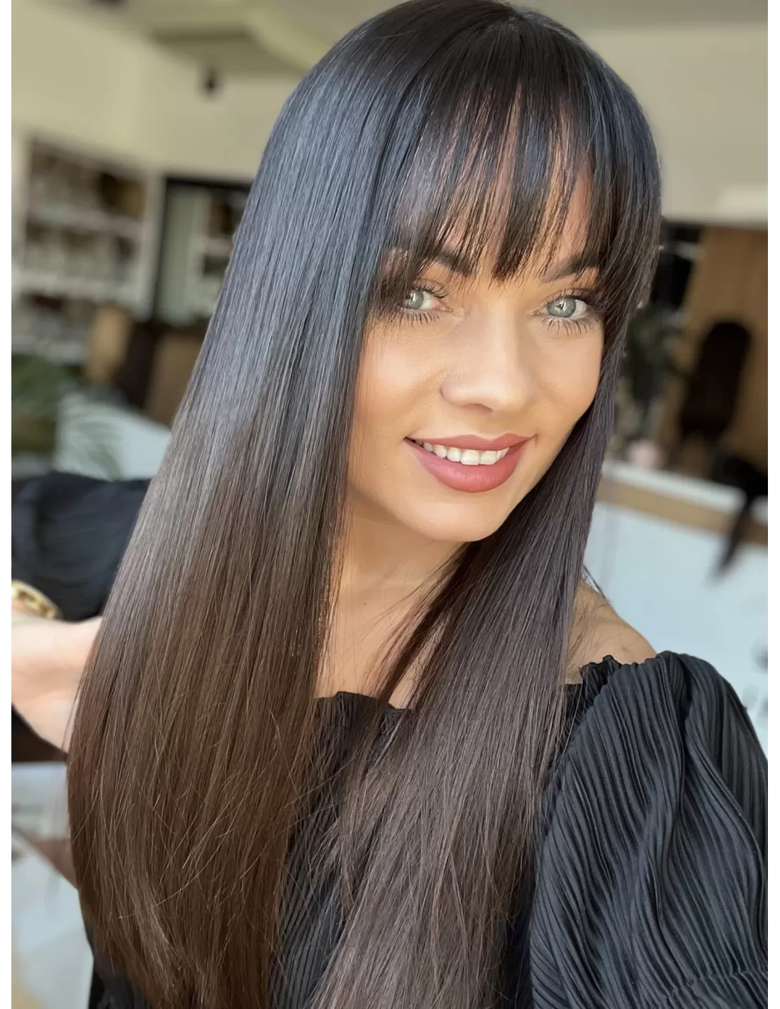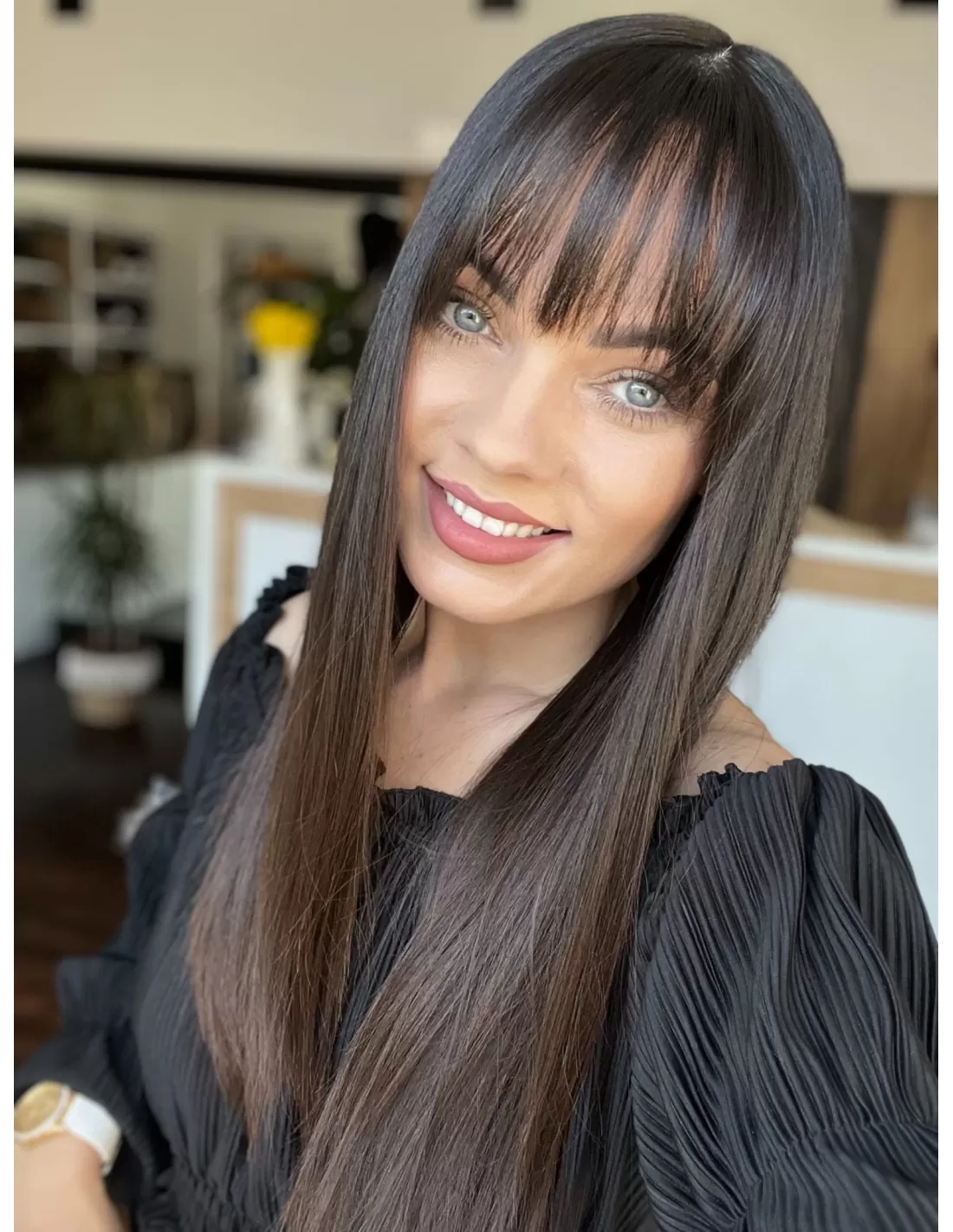 Kolor toppera to przepiękny odcień ombre. Bardzo delikatne i subtelne przejście z ciemnego brązu u nasady toppera do pięknego czekoladowego brązu w ciepłej tonacji po długości