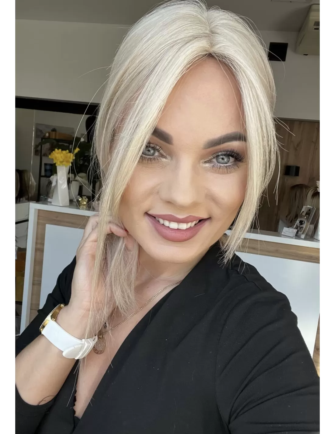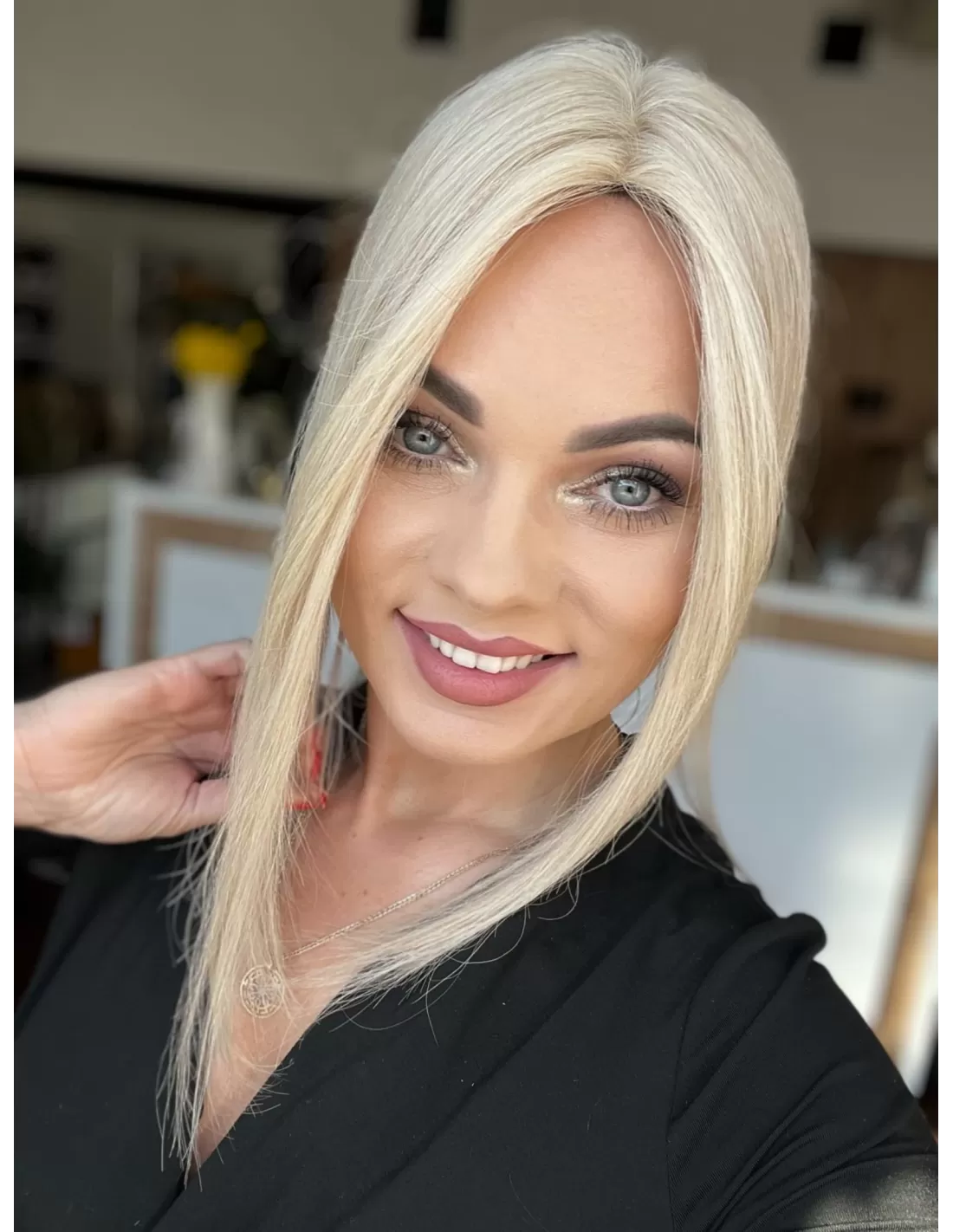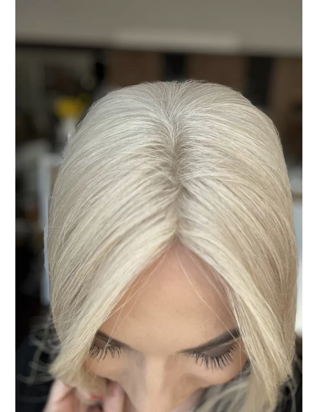 Przedstawiamy mini topper, idealne rozwiązanie dla osób pragnących subtelnie zagęścić przedziałek. Wykonany z naturalnych włosów w odcieniu platynowego blondu.