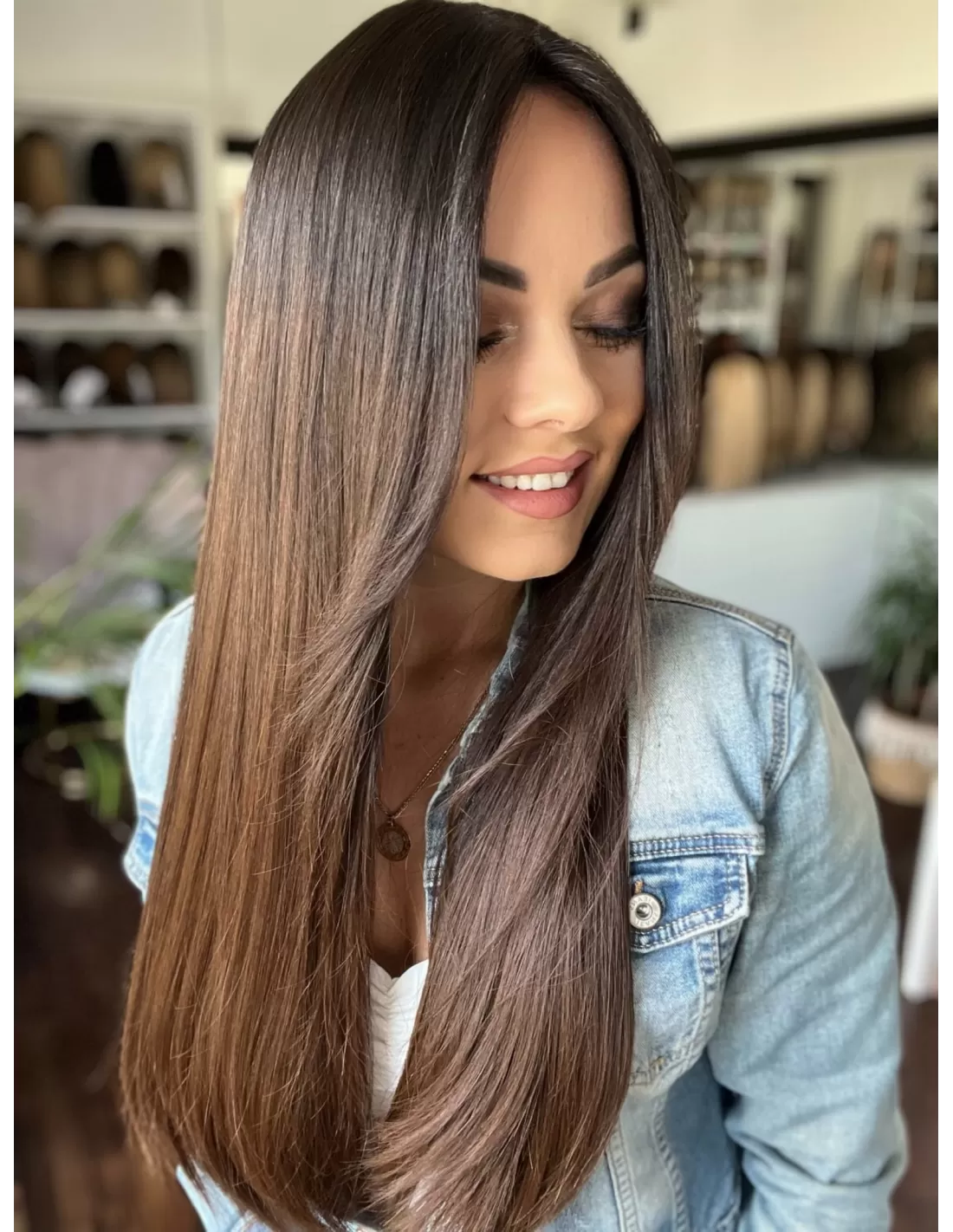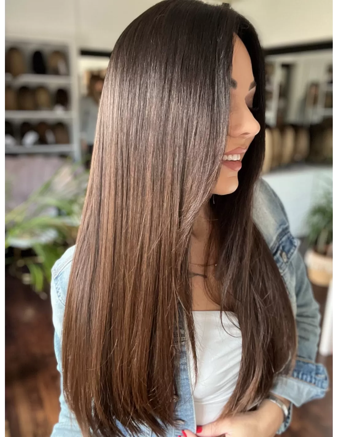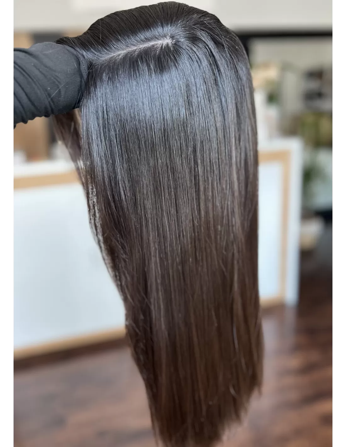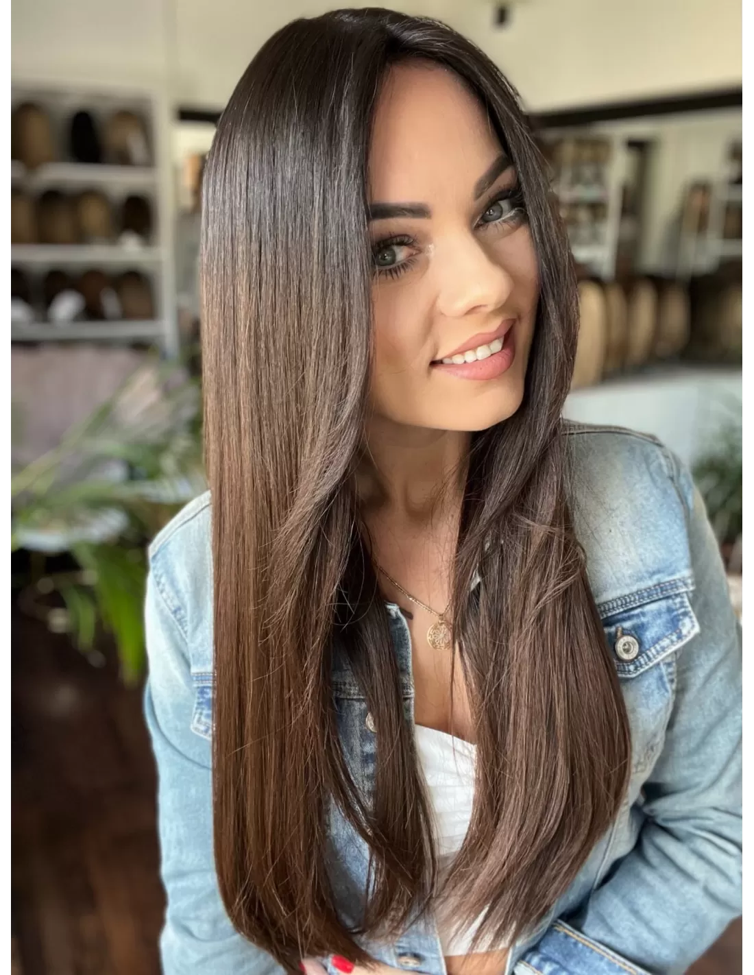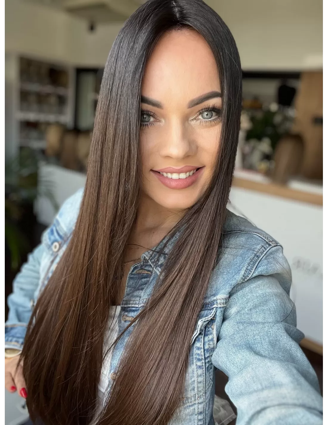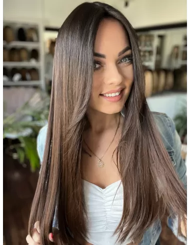 Kolor toppera to przepiękny odcień ombre. Bardzo delikatne i subtelne przejście z ciemnego brązu u nasady toppera do pięknego czekoladowego brązu w ciepłej tonacji po długości
