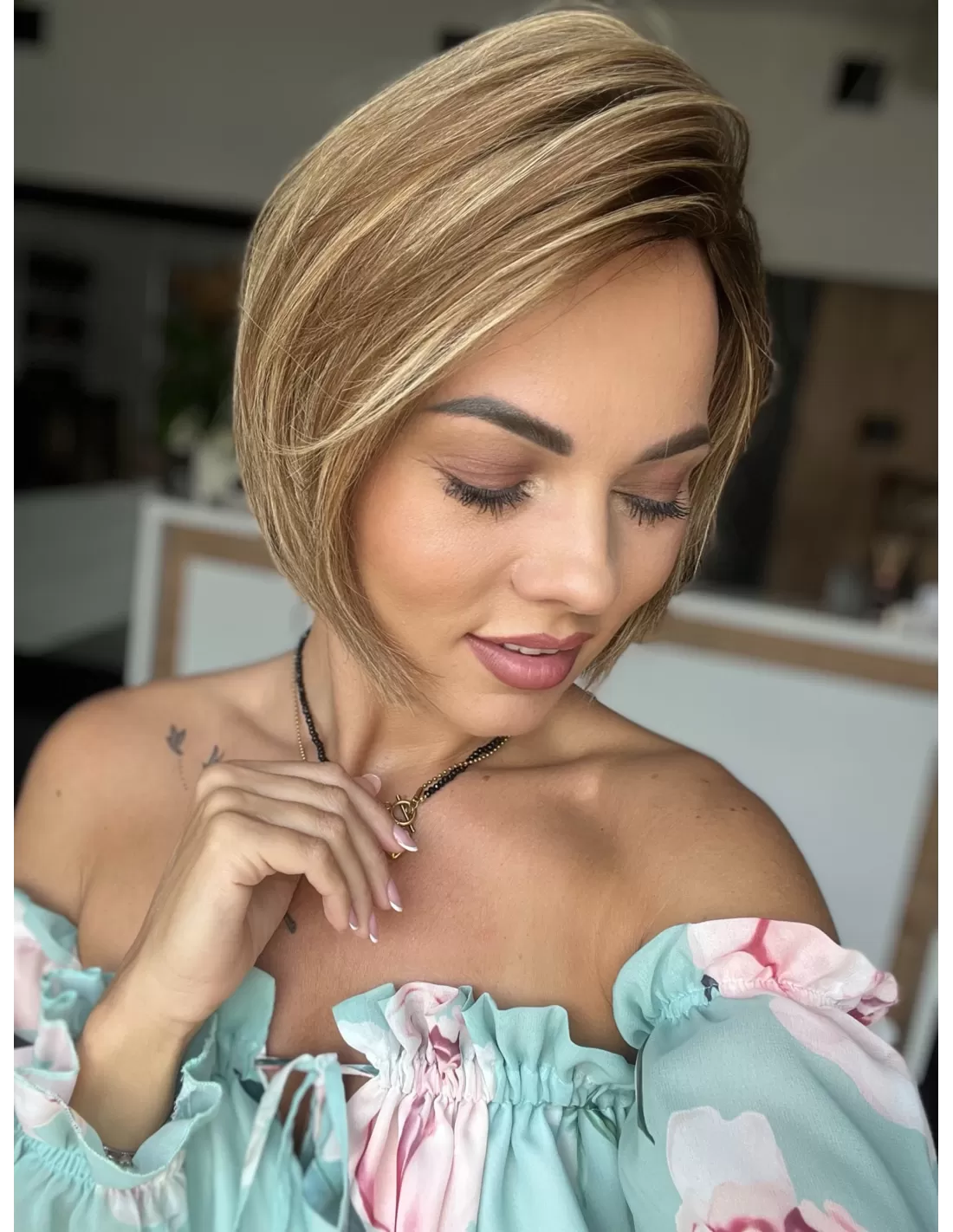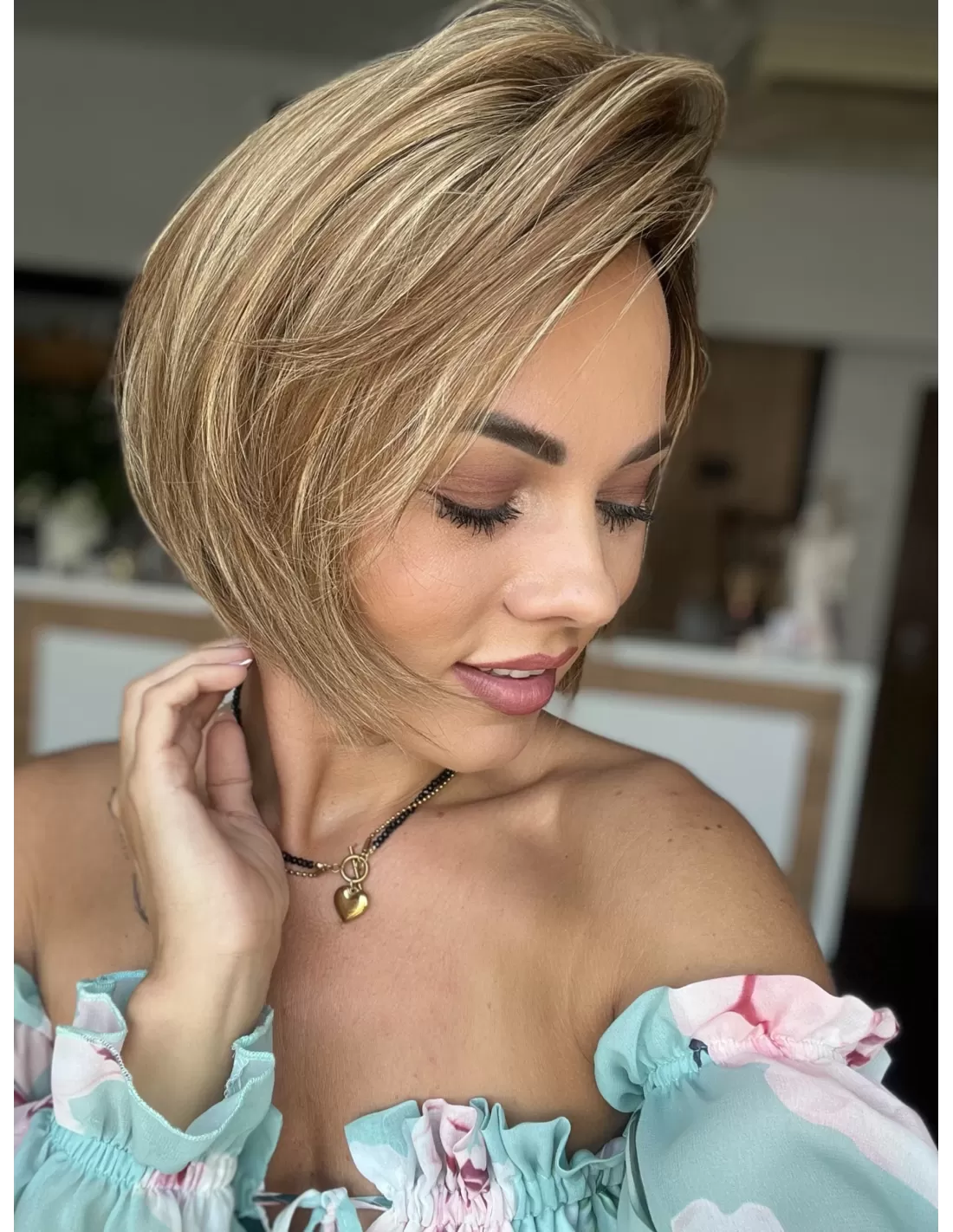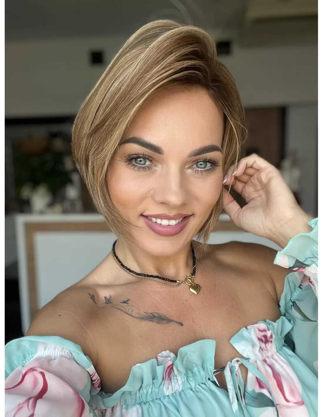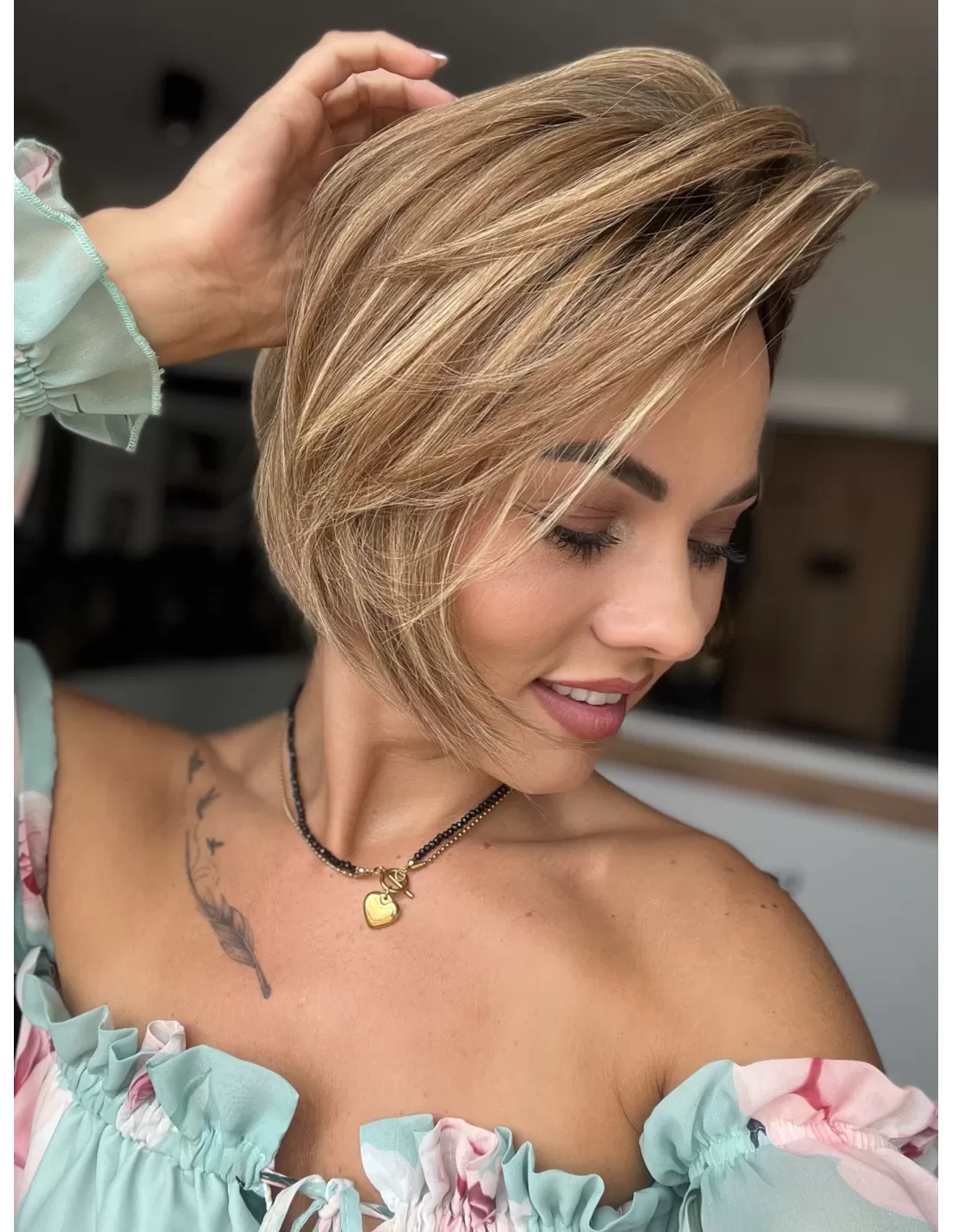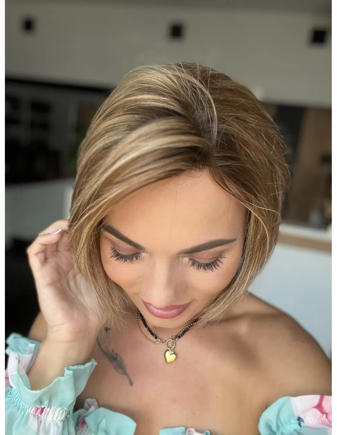 Topper Elii to arcydzieło najwyższej jakości, stworzone z naturalnych włosów, które wprowadzą do Twojej stylizacji nowy wymiar elegancji. Kolorystyka to baleyage blond w ciepłych tonacjach z ciemniejszym odrostem, co nadaje włosom delikatny i naturalny blask.