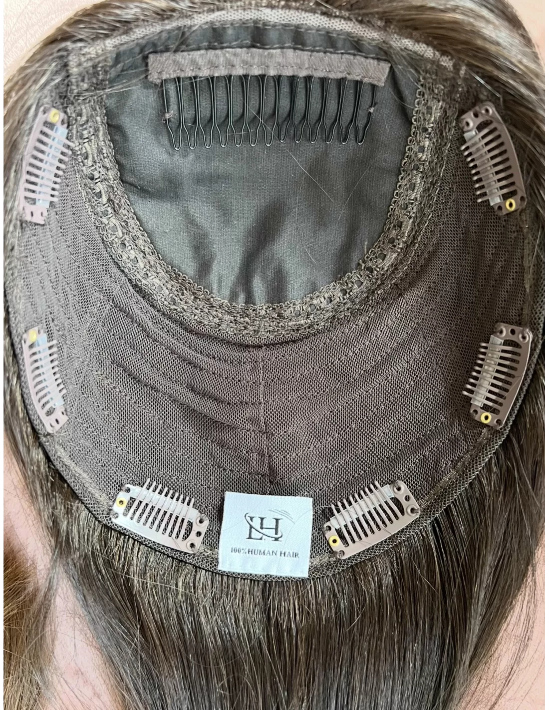 Topper Bianka powstał z wyselekcjonowanych, naturalnych włosów w pięknym odcieniu ombre. Bianka, to kwintesencja elegancji i luksusu. Jego gładka, jedwabista struktura subtelnie otula fryzurę, dodając jednocześnie wyjątkowego blasku. Każdy pasmo toppera emanuje naturalnym pięknem, ponieważ składa się z naturalnych włosów, co gwarantuje niezrównaną jakość. To idealne rozwiązanie dla tych, którzy pragną osiągnąć perfekcyjny efekt, łączący naturalność z wyrafinowanym stylem.