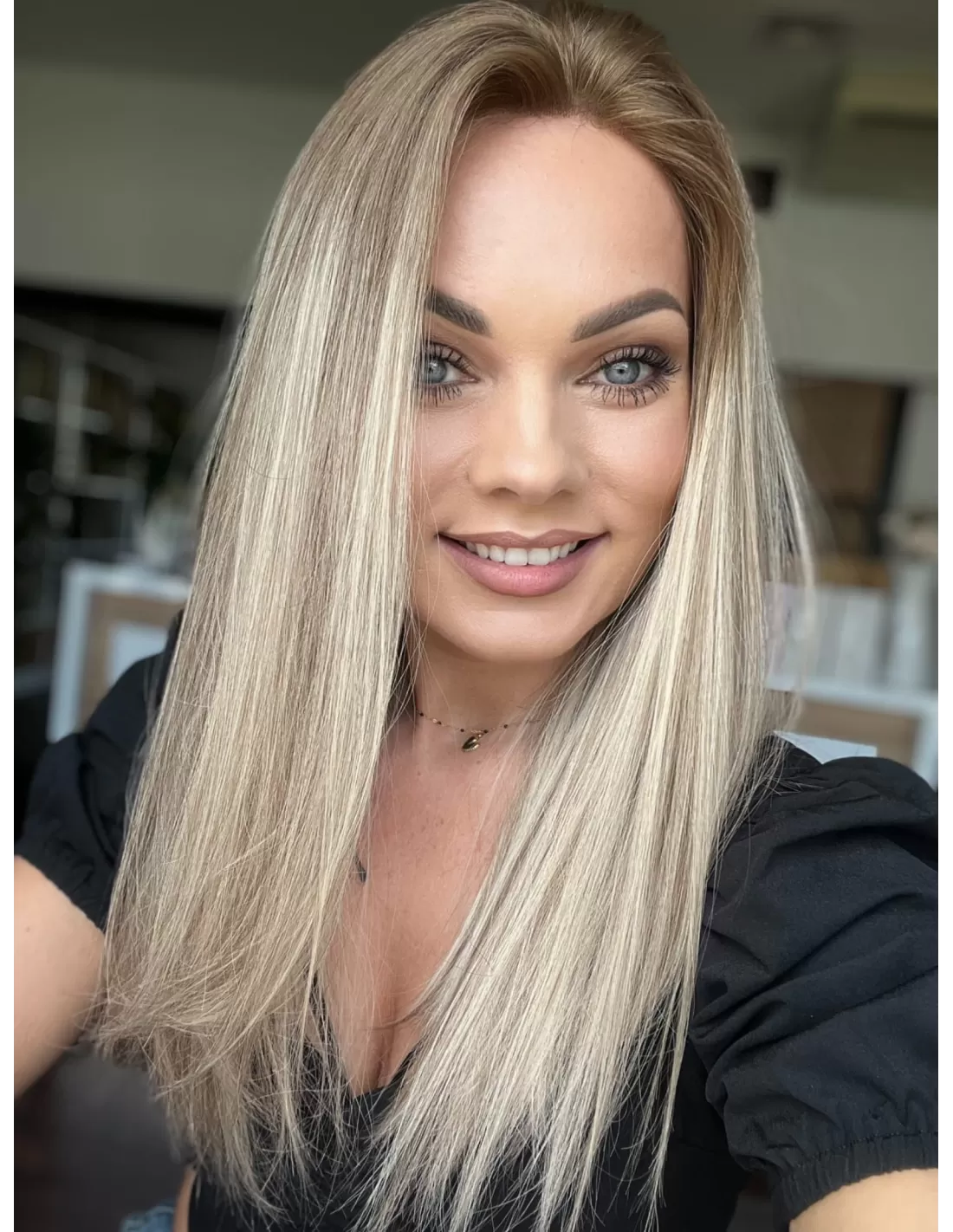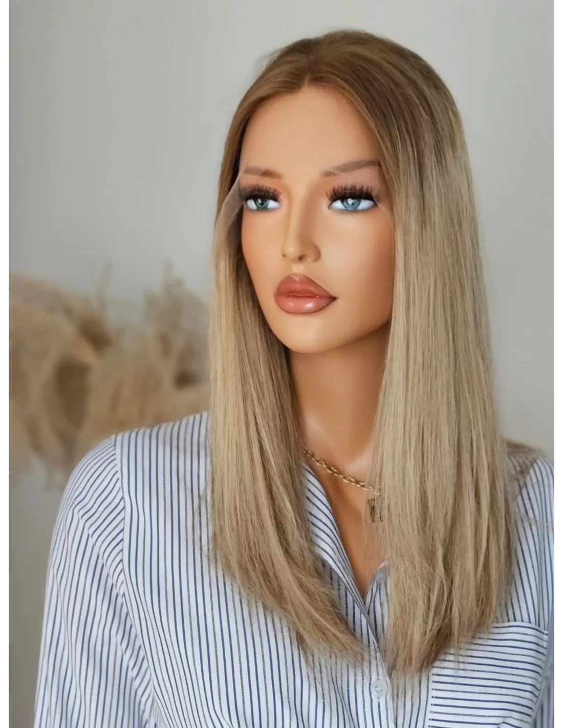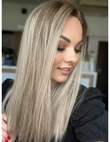 Peruka Tori emanuje subtelnością i elegancją. Jej chłodny odcień blondu z bardzo delikatnymi ciemniejszymi pasemkami i kontrastowym odrostem w kolorze ciemnego chłodnego blondu tworzą harmonijną grę kolorów. To niezwykłe dzieło sztuki, które podkreśla Twoją urodę i wyraża Twój unikalny styl.