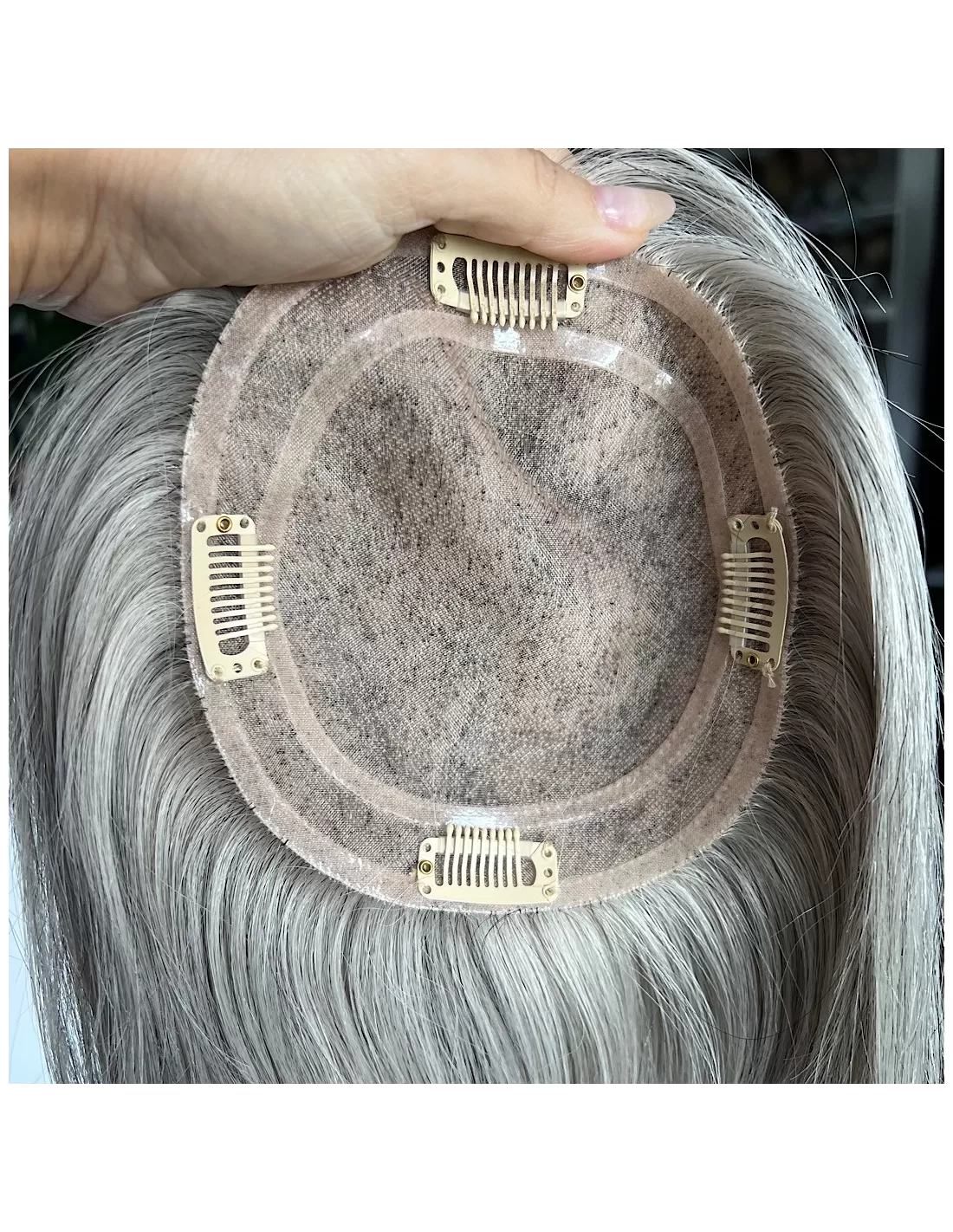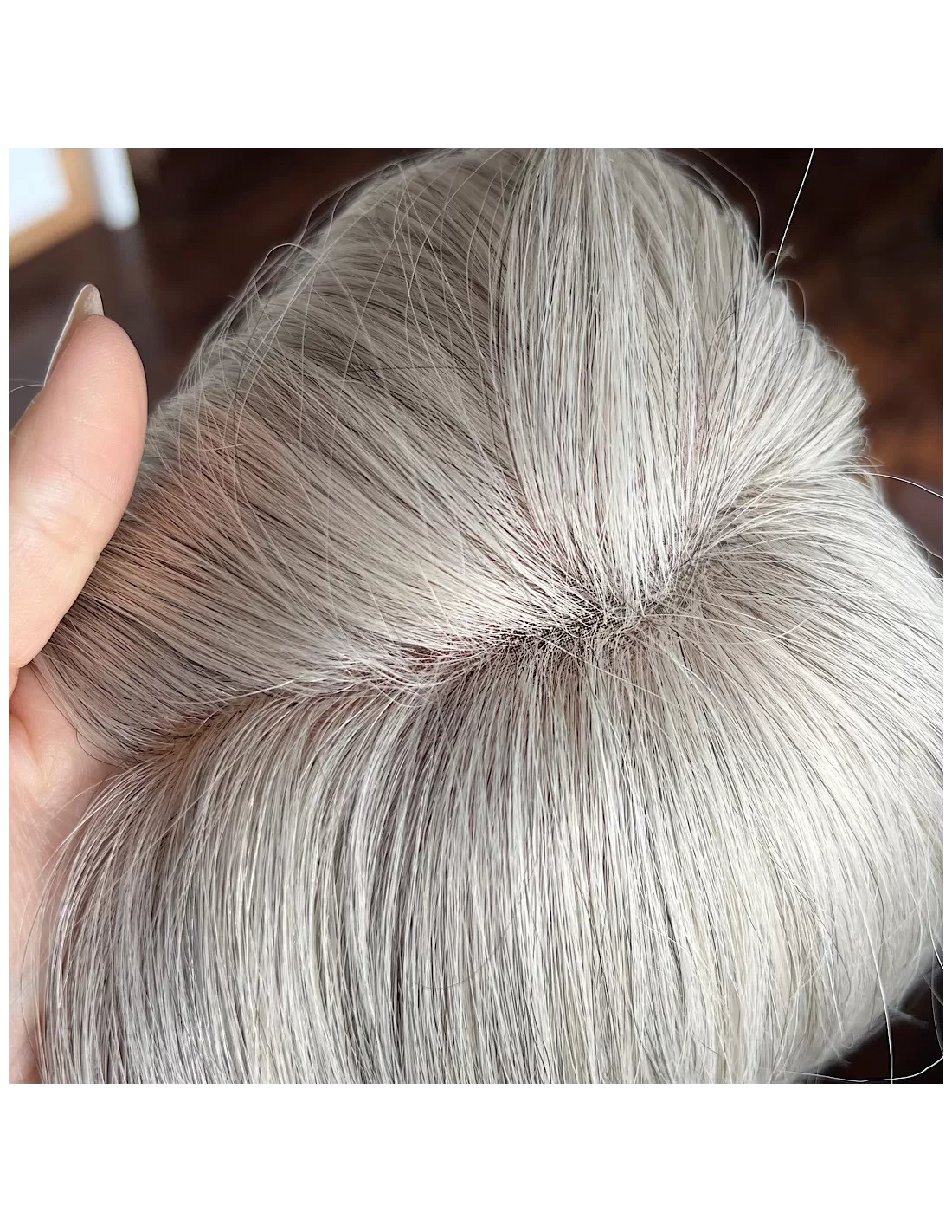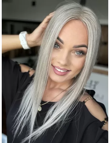 Topper z włosów naturalnych Natalia 03 – srebrzysta elegancja w lekkim wydaniu