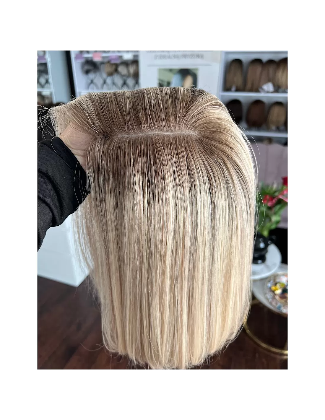 Peruka została wykonana na czepku z mikroskóry oraz z wykończeniem typu lace front. Mikroskóra doskonale imituje naturalną skórę głowy – włosy wyglądają, jakby wyrastały bezpośrednio z niej, co zapewnia maksymalny realizm i komfort. Z kolei lace front tworzy miękkie, niemal niewidoczne przejście pomiędzy linią czoła a włosami, co pozwala na naturalne odsłanianie czoła i stylizację włosów do tyłu.