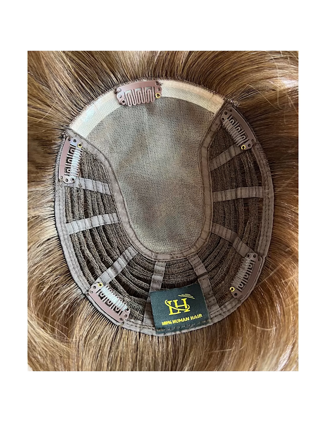 5 spinek Clip In: Topper jest wyposażony w 5 spinek typu "Clip In", które umożliwiają łatwe i bezpieczne przymocowanie do włosów naturalnych. Te spineczki zapewniają stabilność i pewność, że topper pozostanie na miejscu, nawet podczas aktywności.
