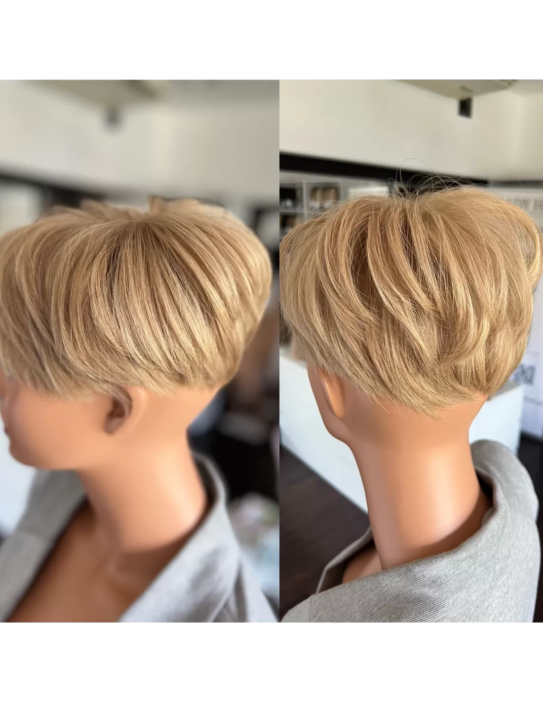 Najwyższej jakości włosy naturalne: Włosy użyte w tym topperze są naturalne, co oznacza, że wyglądają i zachowują się dokładnie jak włosy własnej głowy. Możesz je stylizować, farbować i modelować według swoich upodobań.