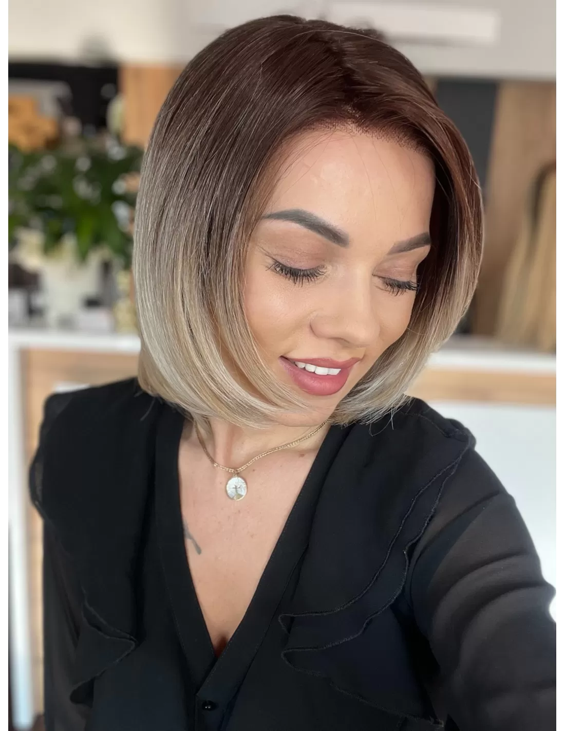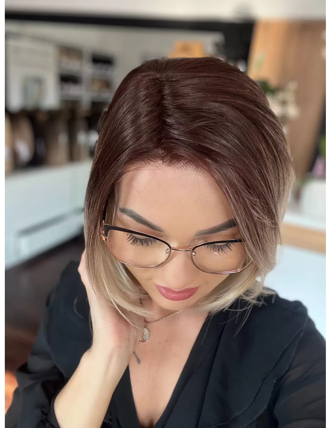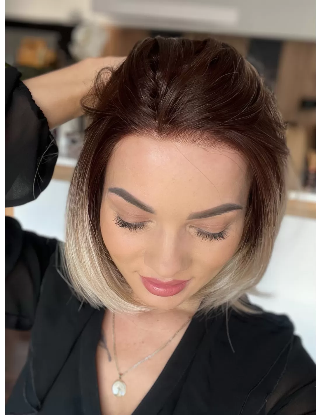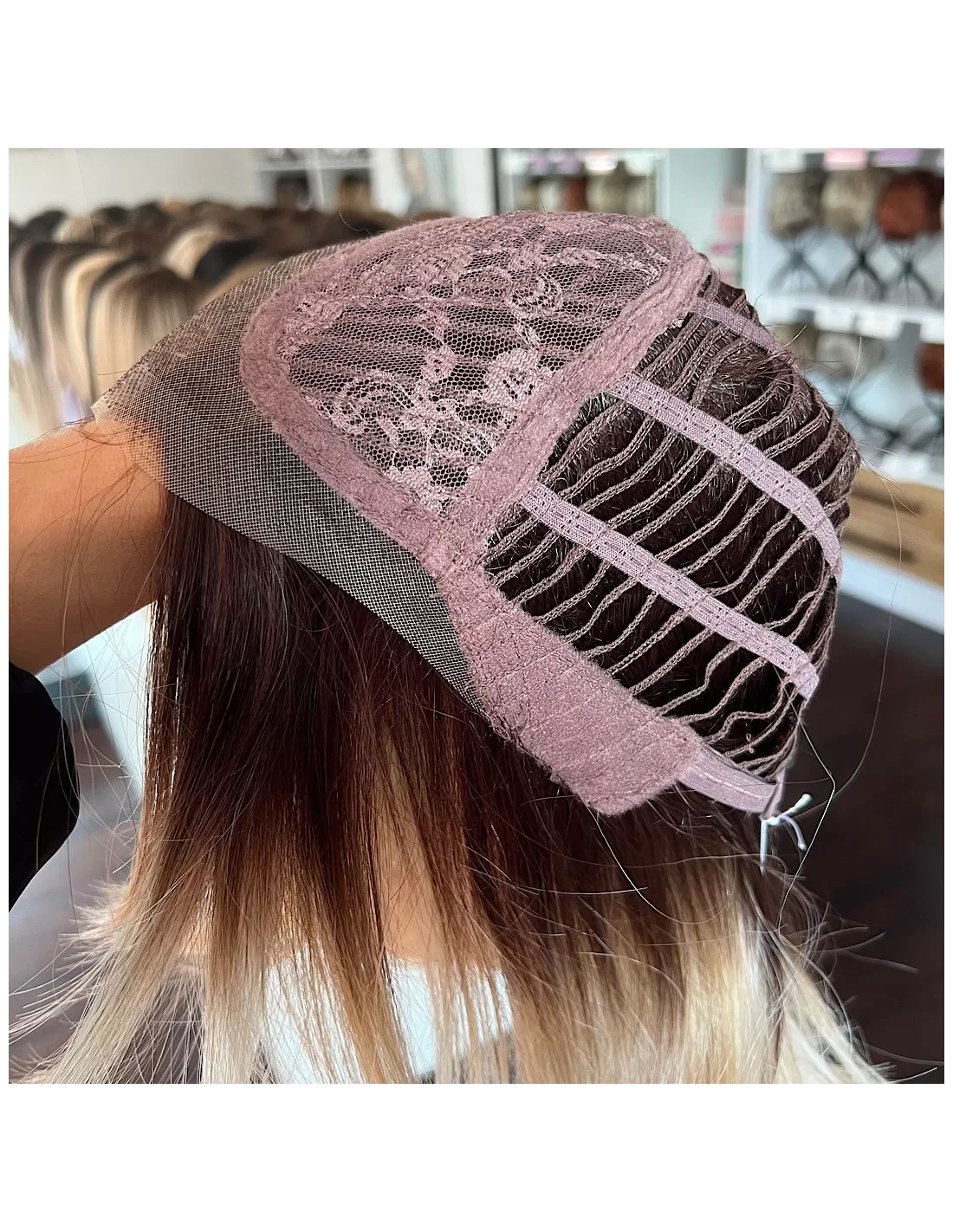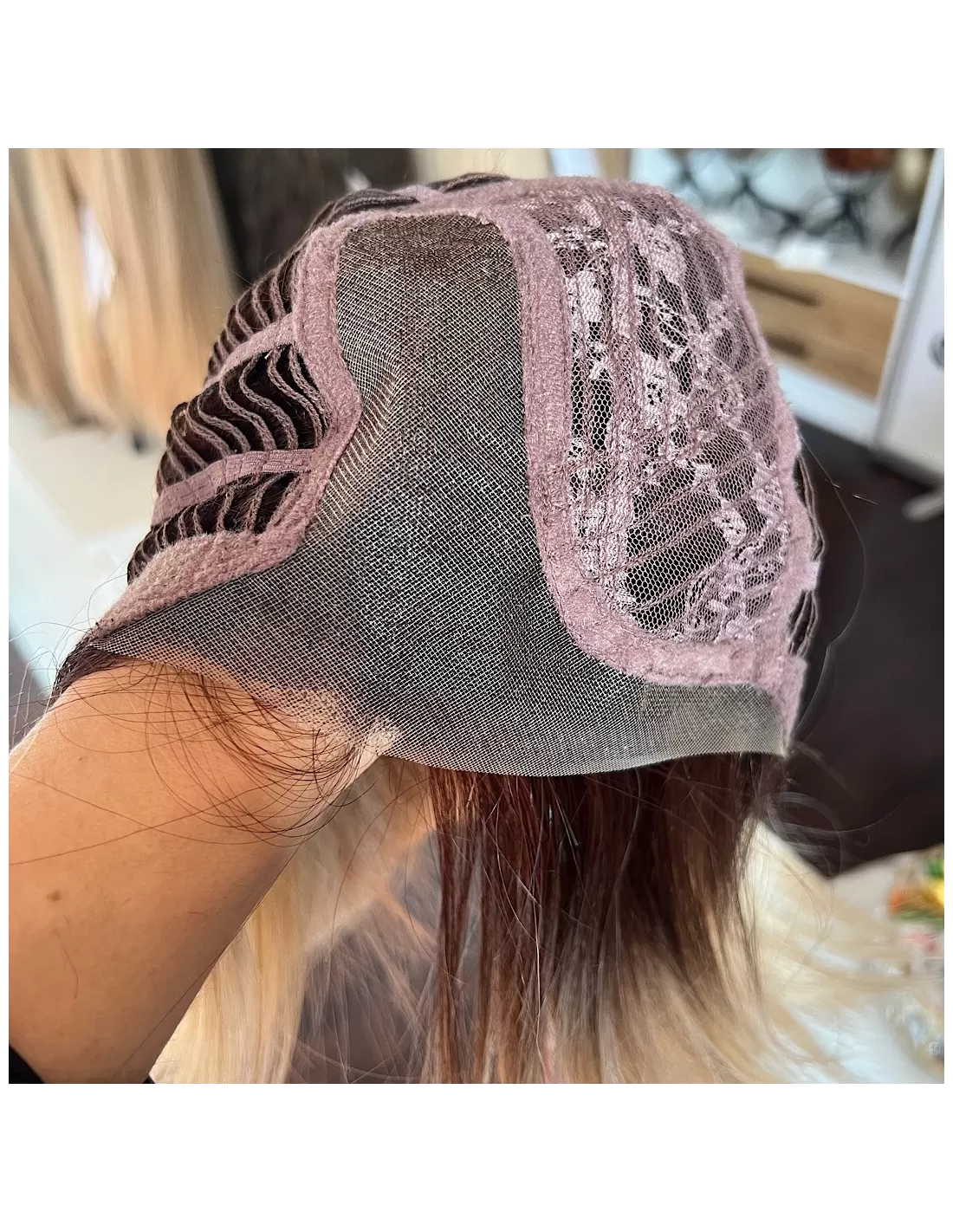 Dodatkowo peruka posiada wstawki silikonowe, które zapobiegają przemieszczaniu się peruki