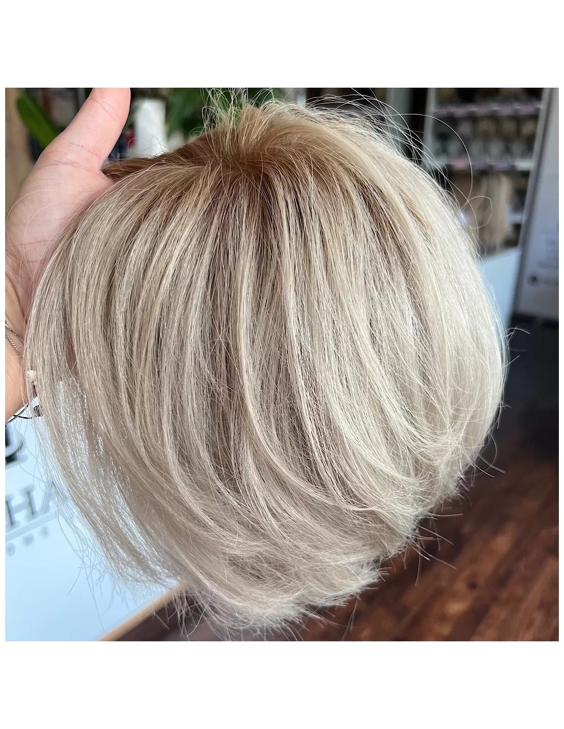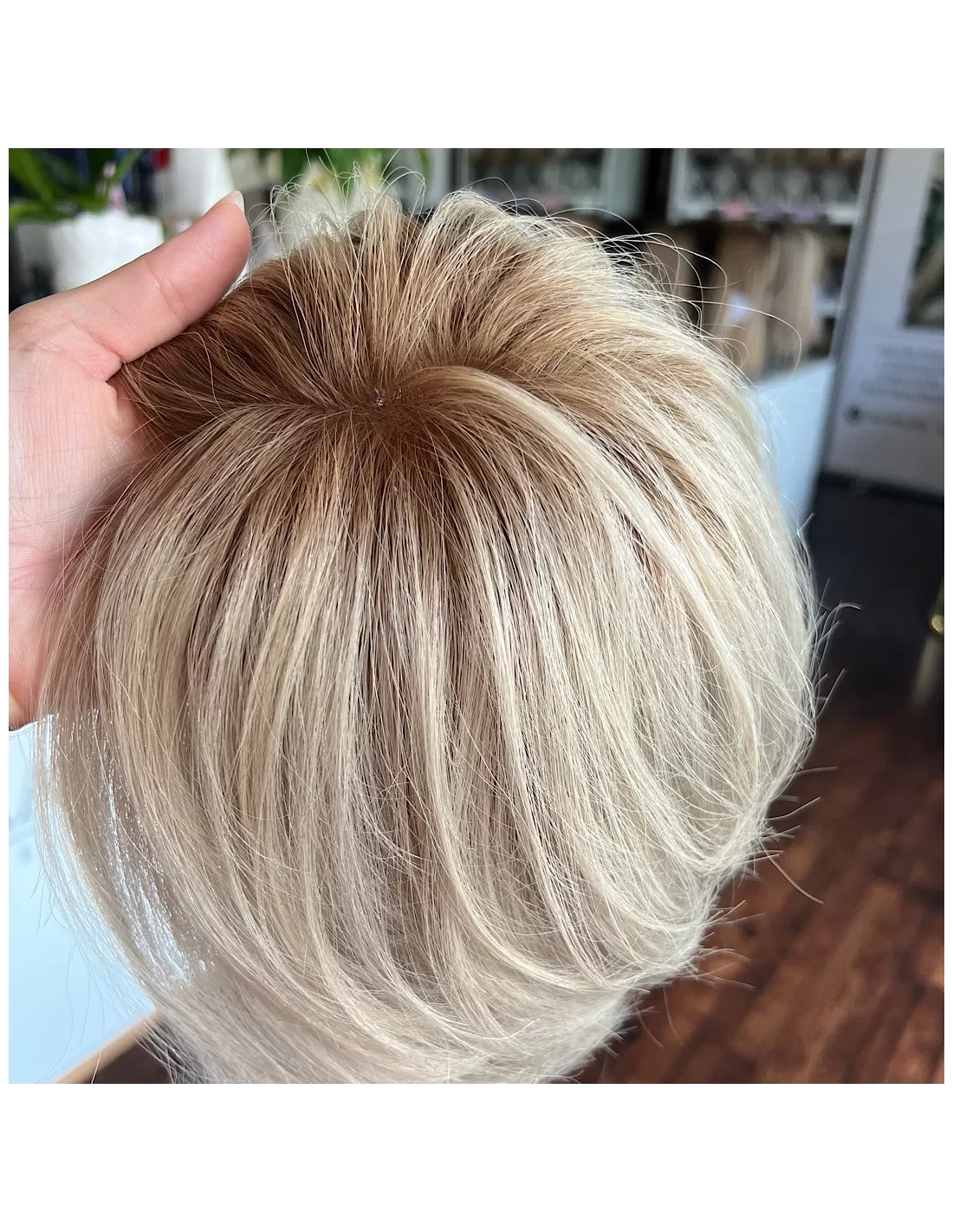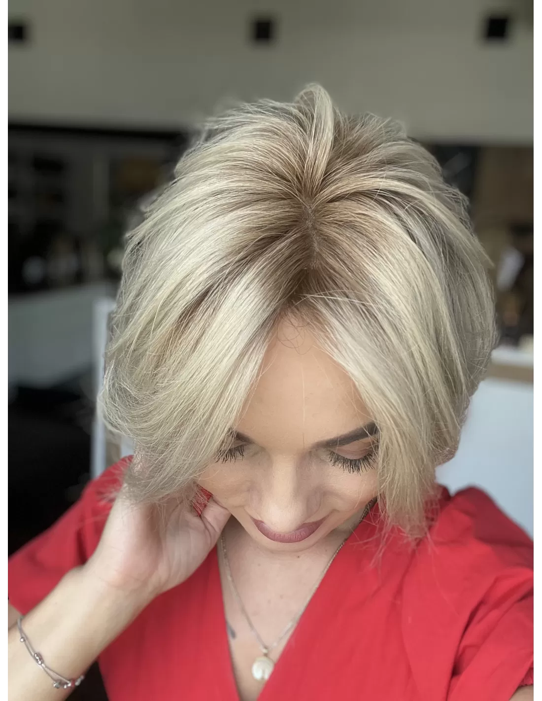 Konstrukcja bazująca na mono: Topper ten wyposażony jest w bazę mono, co oznacza, że włosy są ręcznie tkane do delikatnej siateczki, co zapewnia doskonałe naturalne wykończenie. Mono baza jest niezwykle delikatna dla skóry głowy i zapewnia efekt "scalp-like", co sprawia, że toper jest trudny do odróżnienia od własnych włosów.