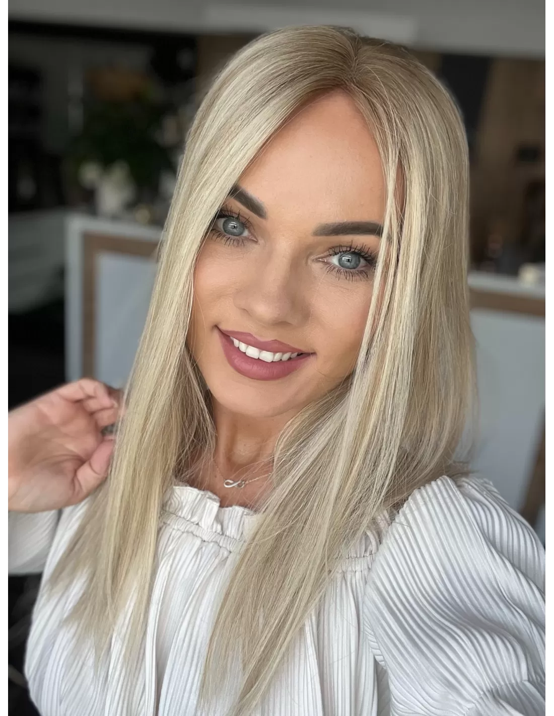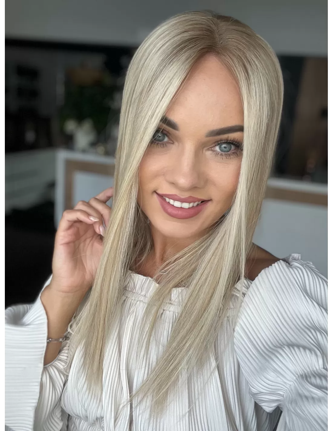 Profesjonalny topper z wysokiej jakości włosów naturalnych, osadzonych na bazie typu monofilament z obrzeżem PU, która zapewnia doskonałe dopasowanie oraz naturalny wygląd. Idealny do noszenia na co dzień – wygodny, oddychający i łatwy w montażu.