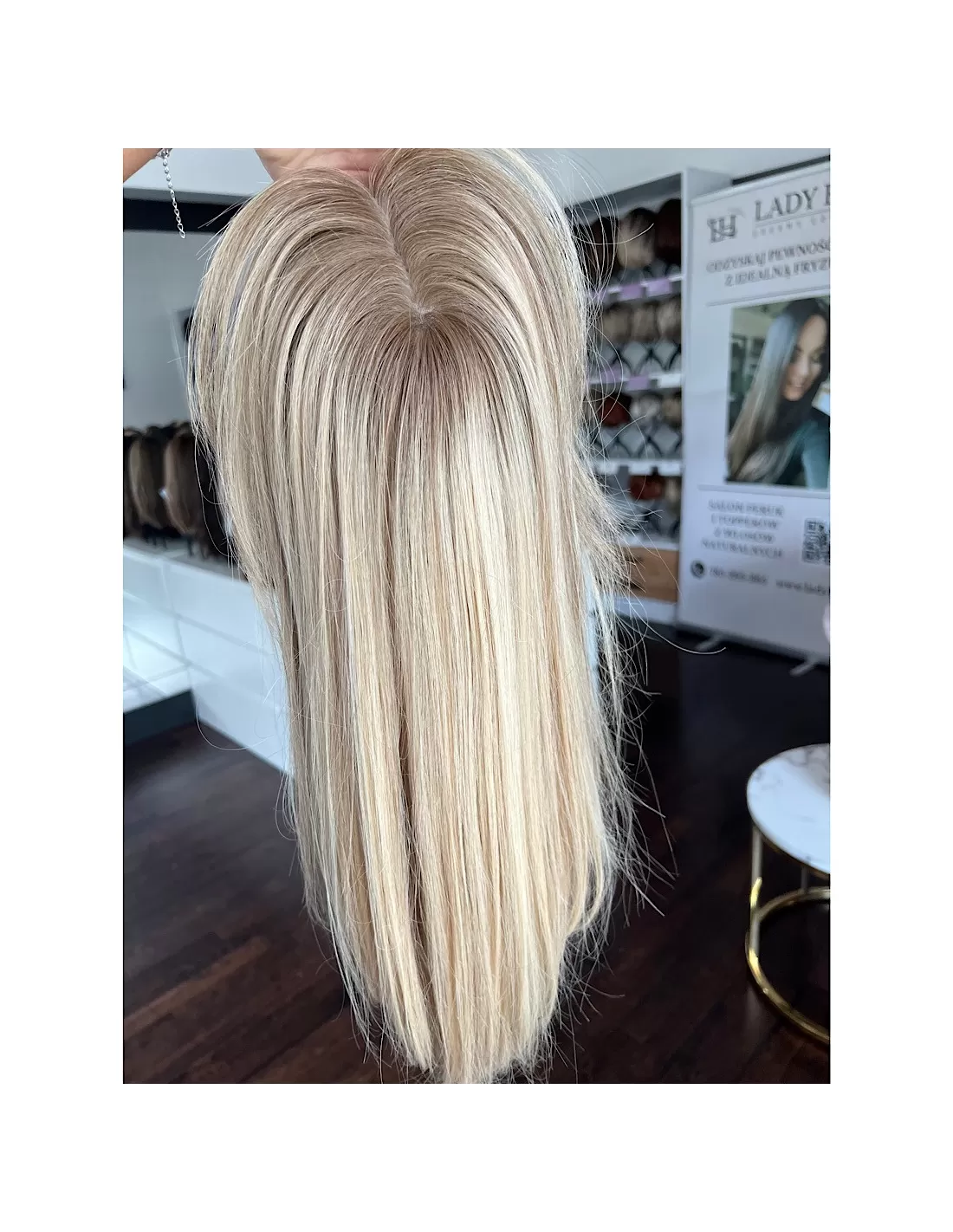 - Odrost: Średni, chłodny blond – piękne, miękkie przejście od nasady, które imituje naturalny odrost i ułatwia dopasowanie do własnych włosów.