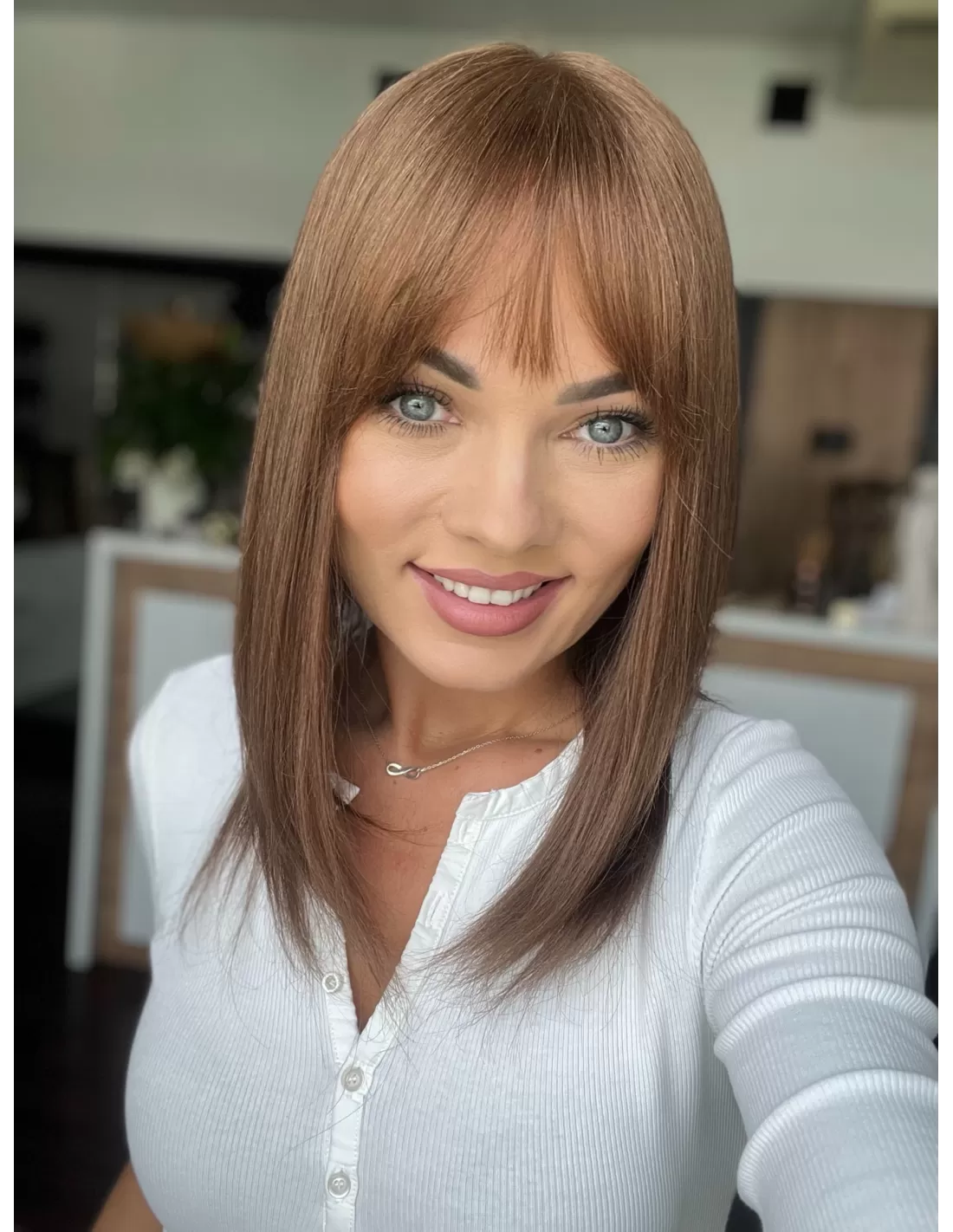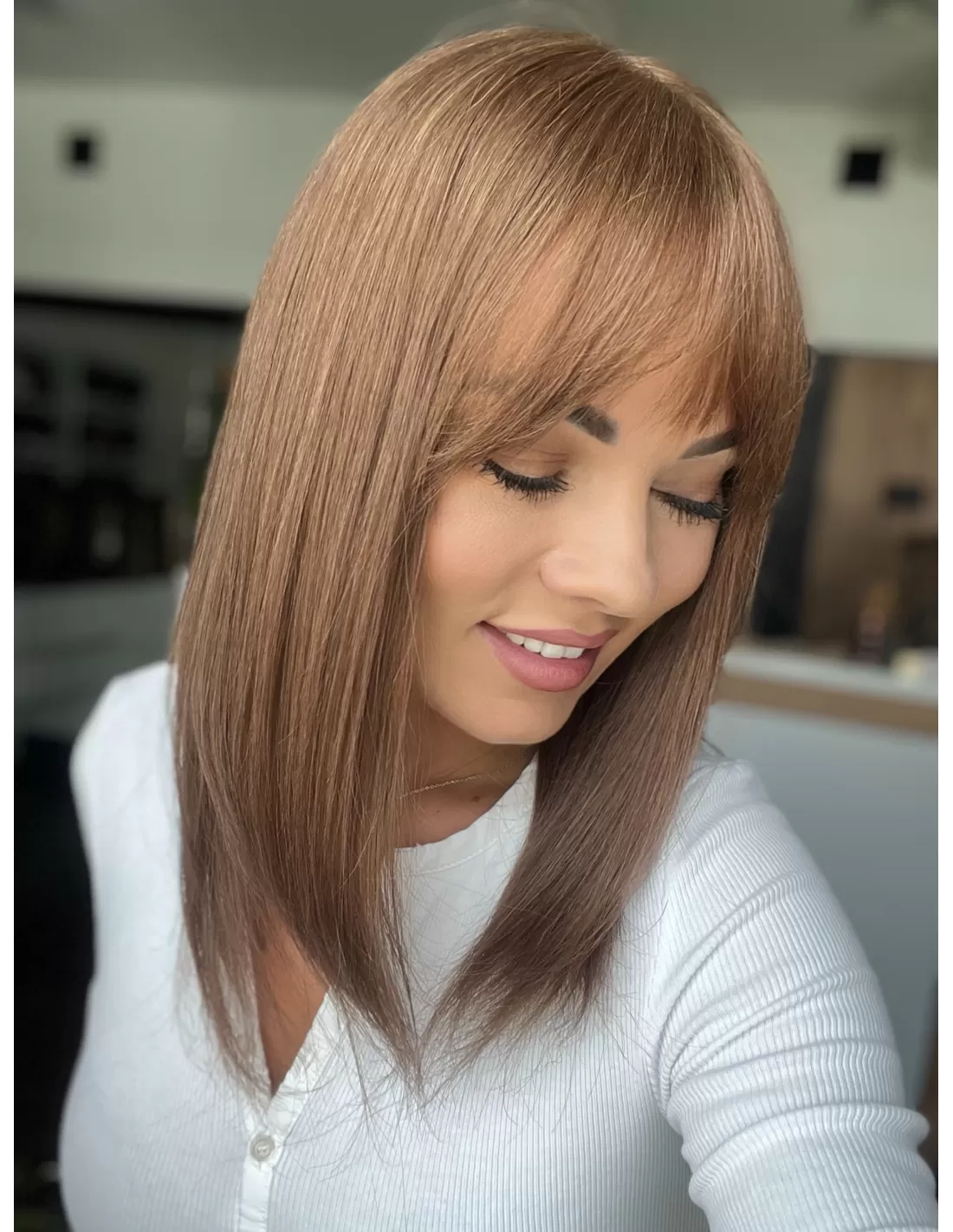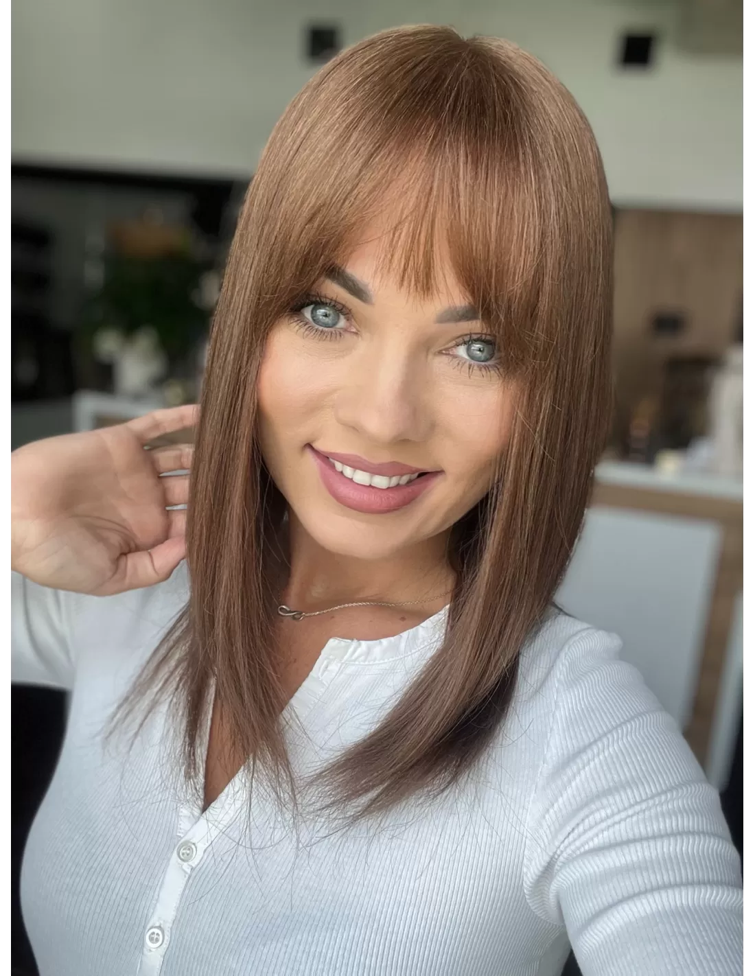 Elura – peruka z włosów naturalnych z grzywką | jasny brąz | 40–45 cm