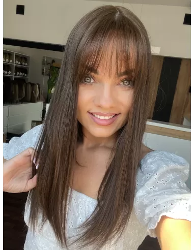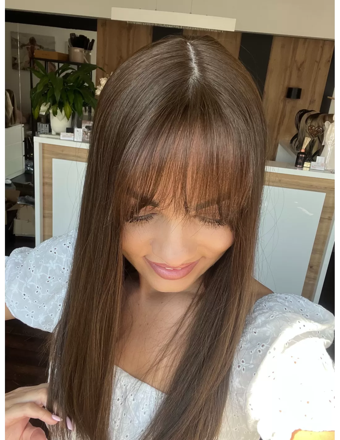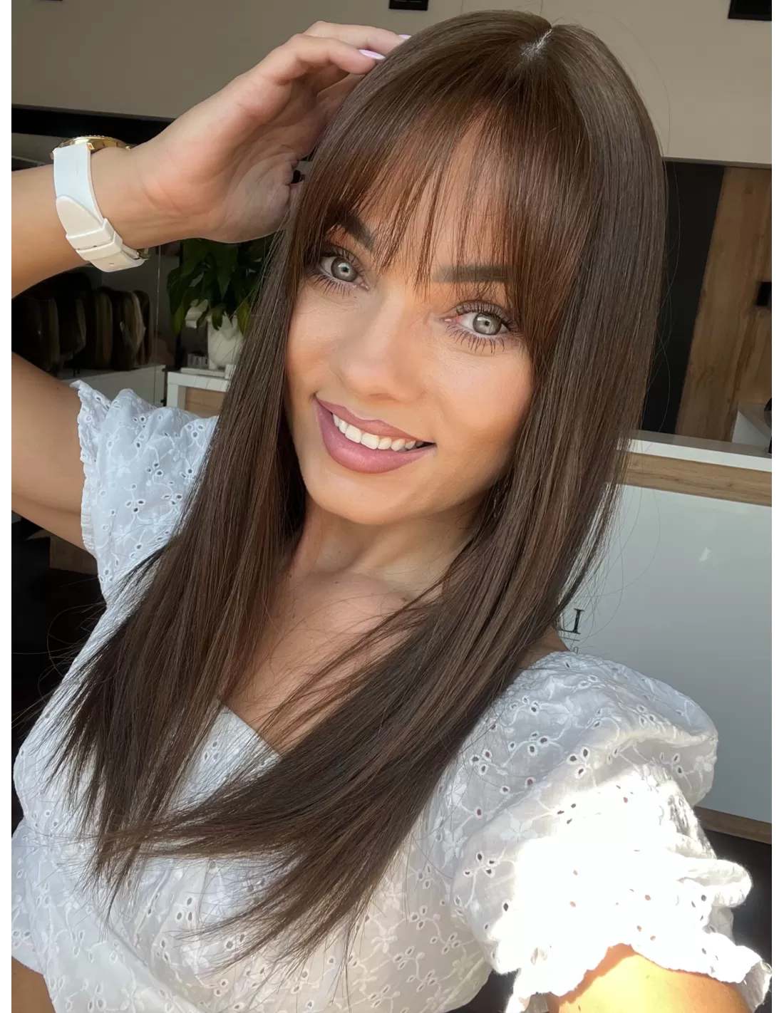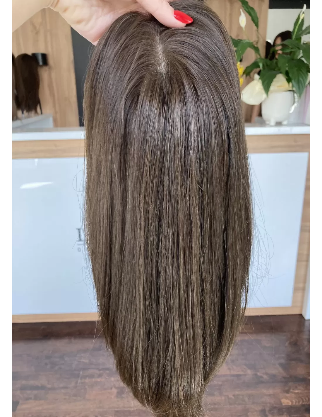 Topper Mira wykonany został z najwyższej jakości naturalnych włosów europejskich o naturalnym odcieniu brązu. Dzięki temu, nie tylko struktura włosów, ale także kolor są absolutnie zgodne z naturalnym wyglądem. To oznacza, że możesz cieszyć się piękną fryzurą, która jest w pełni spersonalizowana do twojego stylu i koloru włosów. Naturalny brąz na poziomie koloru #4 to odcień, który sprawia, że topper wygląda niezwykle autentycznie, a jednocześnie nadaje Ci pewność siebie, wiedząc, że twoja fryzura zawsze prezentuje się doskonale.