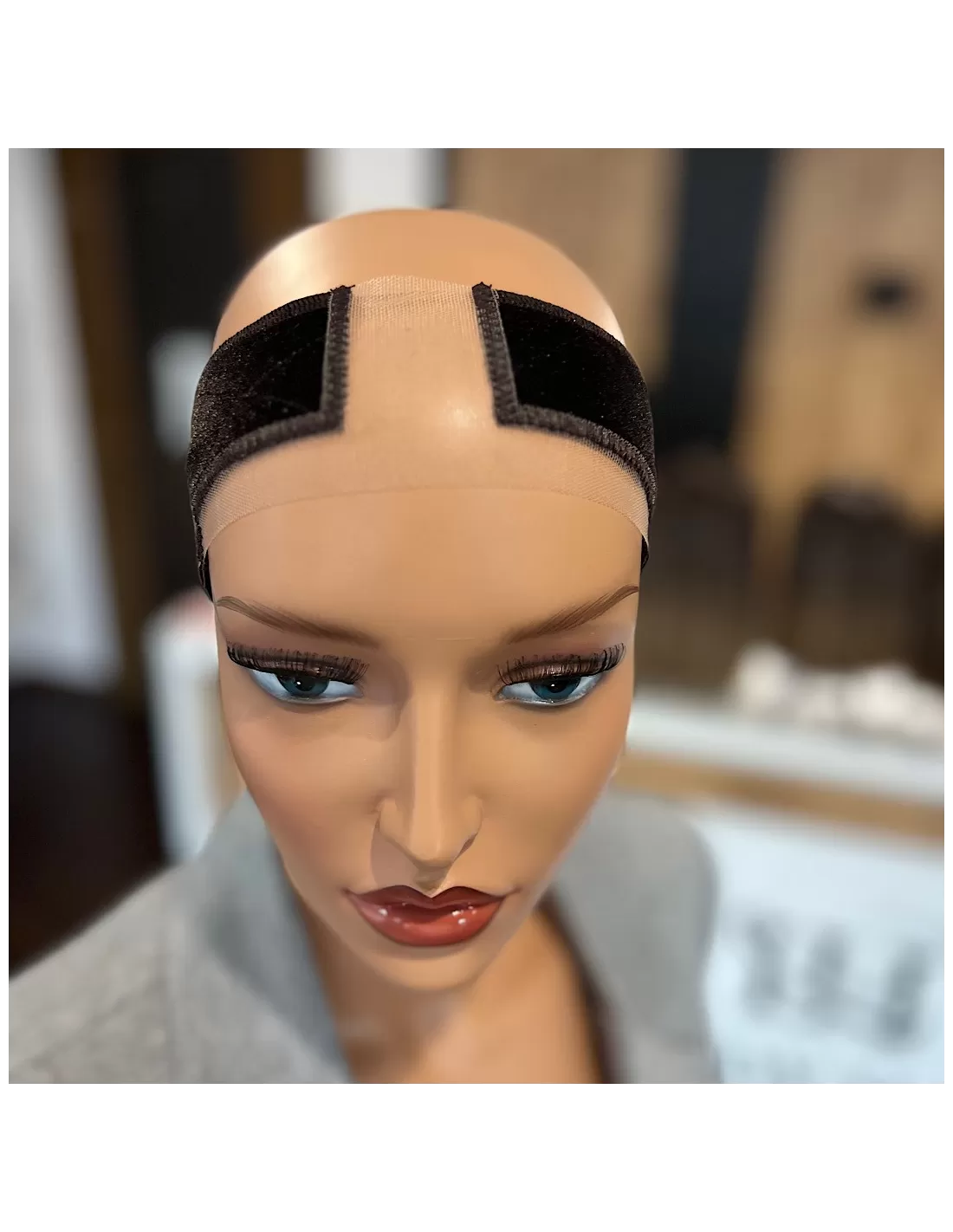 Specjalistyczna opaska zaprojektowana z myślą o perukach typu lace front. Jej wyjątkowa konstrukcja łączy miękkie, welurowe wykończenia z transparentną siateczką, dzięki czemu opaska pozostaje całkowicie niewidoczna pod delikatną linią lace front.