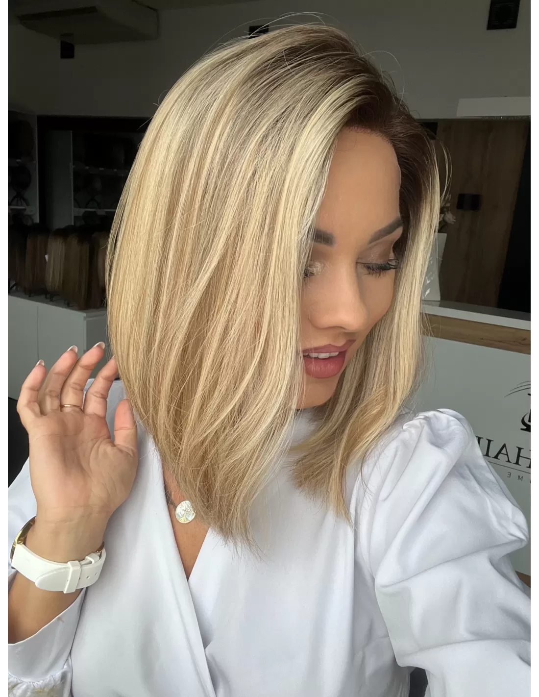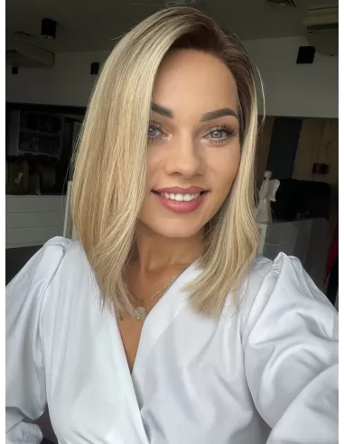 Peruka naturalna Milena 35 cm – ciepły balejaż blond z odrostem