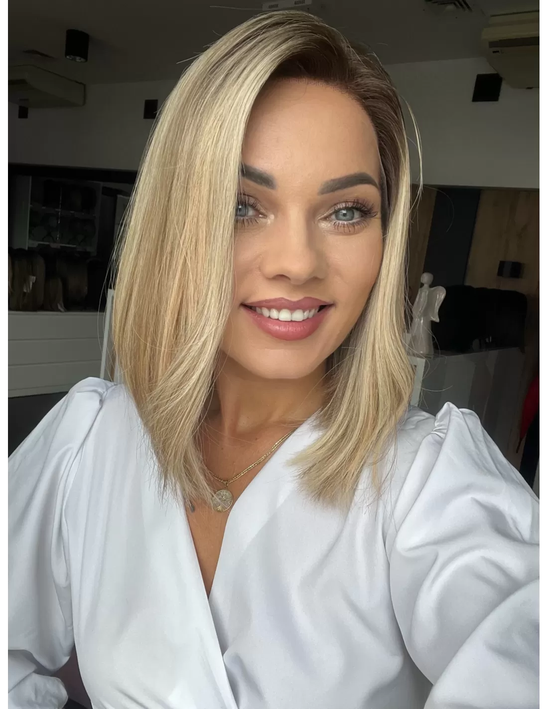 Peruka Milena 35 cm to elegancja i naturalność w jednym. Wykonana w 100% z europejskich włosów naturalnych o prostej teksturze, które zachwycają miękkością, lekkością i pięknym połyskiem.