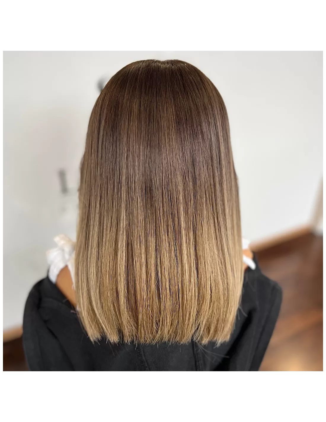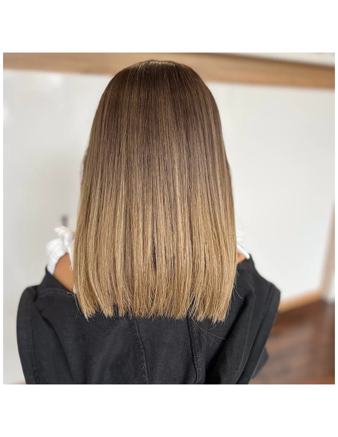 Jej wyjątkowym atutem jest kolor w odcieniu ombre – od średniego chłodnego brązu u nasady, stopniowo przechodzącego w jaśniejszy blond na długości. Wygląda niczym muśnięta promieniami słońca, a subtelne przejścia kolorystyczne nadają fryzurze lekkości i świeżości.
