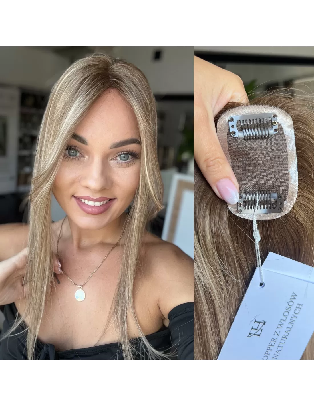 Grzywka/mini topper z włosów naturalnych D8 baleyage blond 45 cm