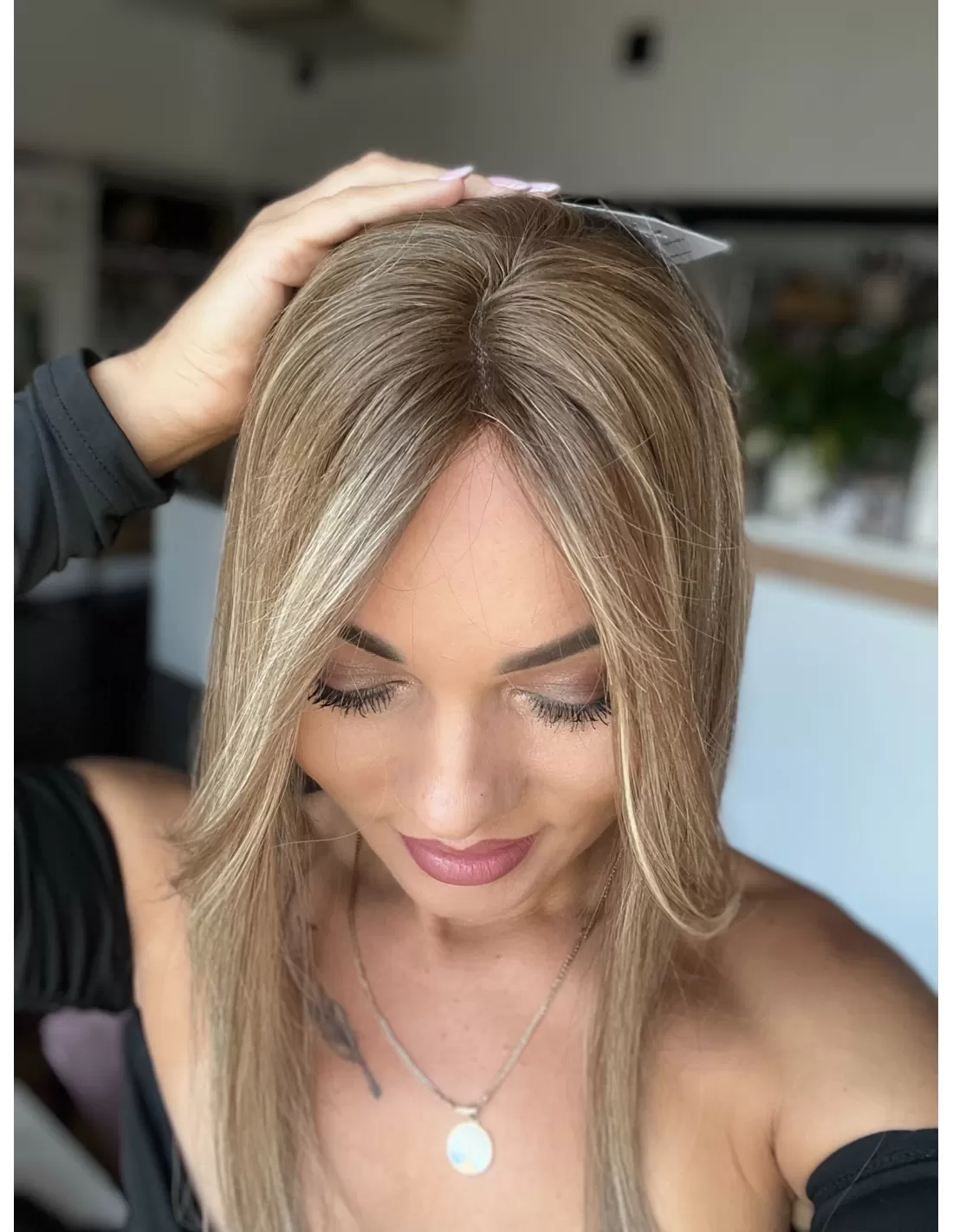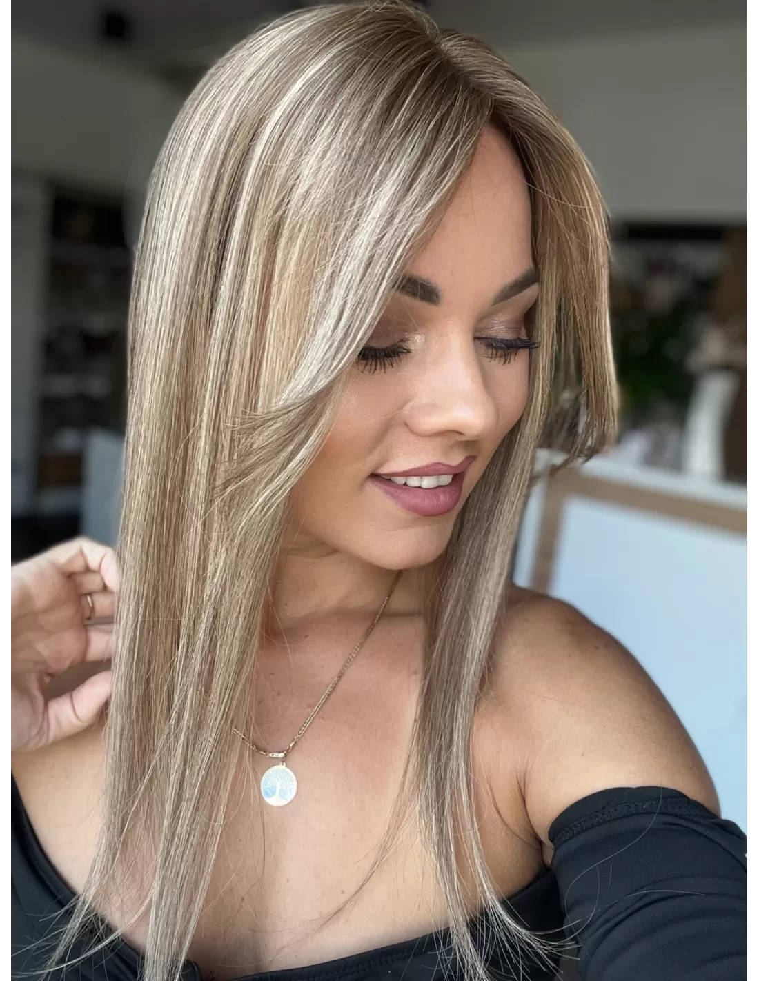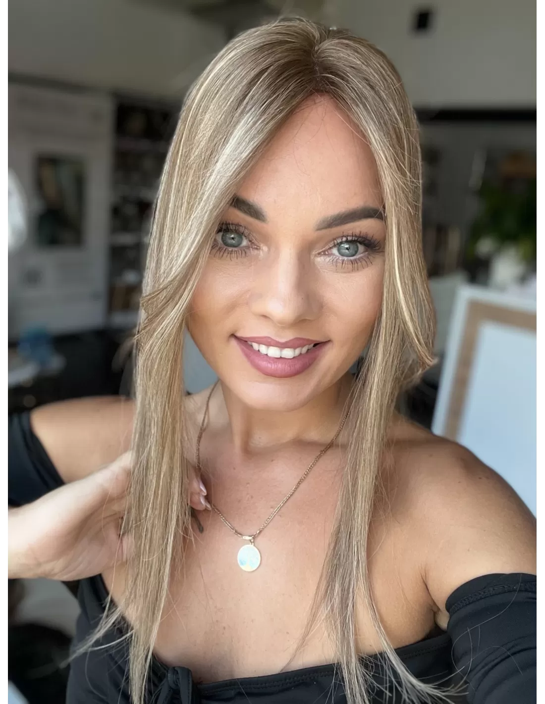 Kolor: Jasny, naturalny blond z subtelnymi, chłodnymi refleksami beżowymi i karmelowymi. Odcień jest wielowymiarowy – łączy w sobie jaśniejsze pasma z delikatnie ciemniejszą, naturalną podstawą, co nadaje włosom realistyczny i świeży wygląd. Idealny dla osób szukających eleganckiego, naturalnie wyglądającego blondu z miękkim efektem rozświetlenia.