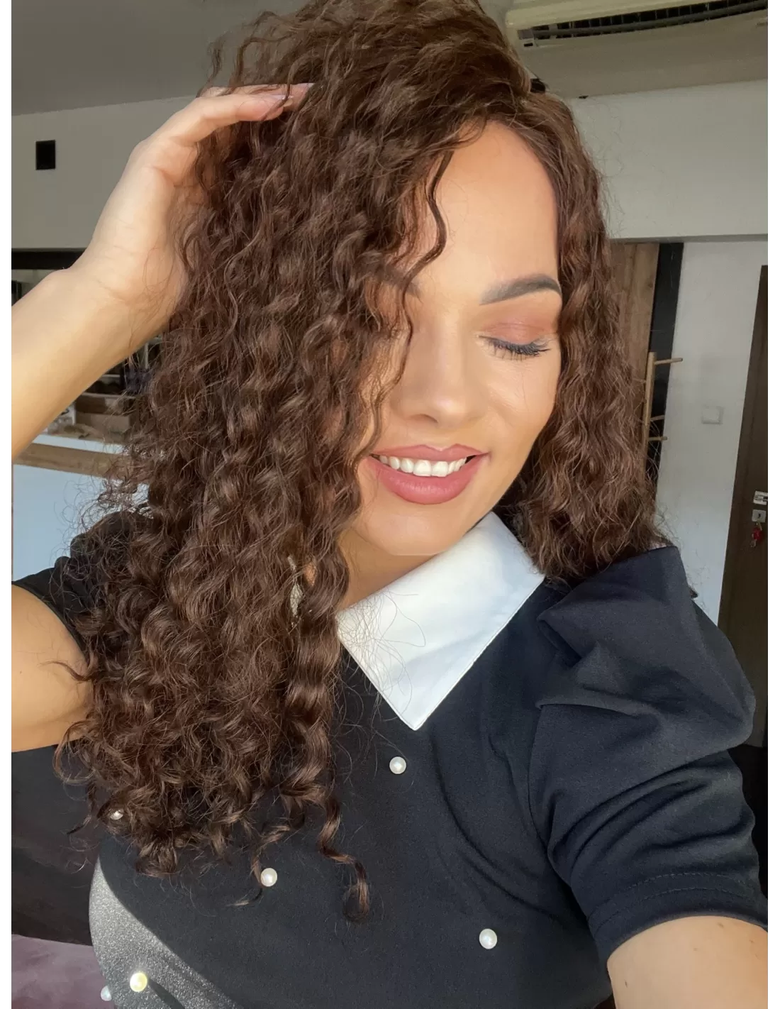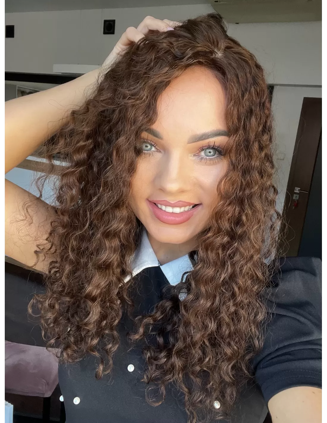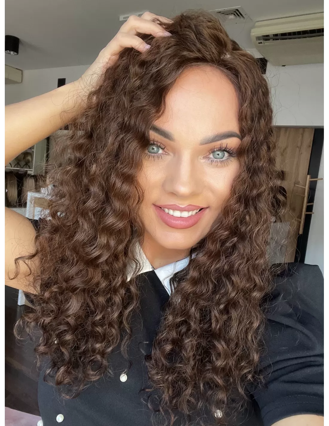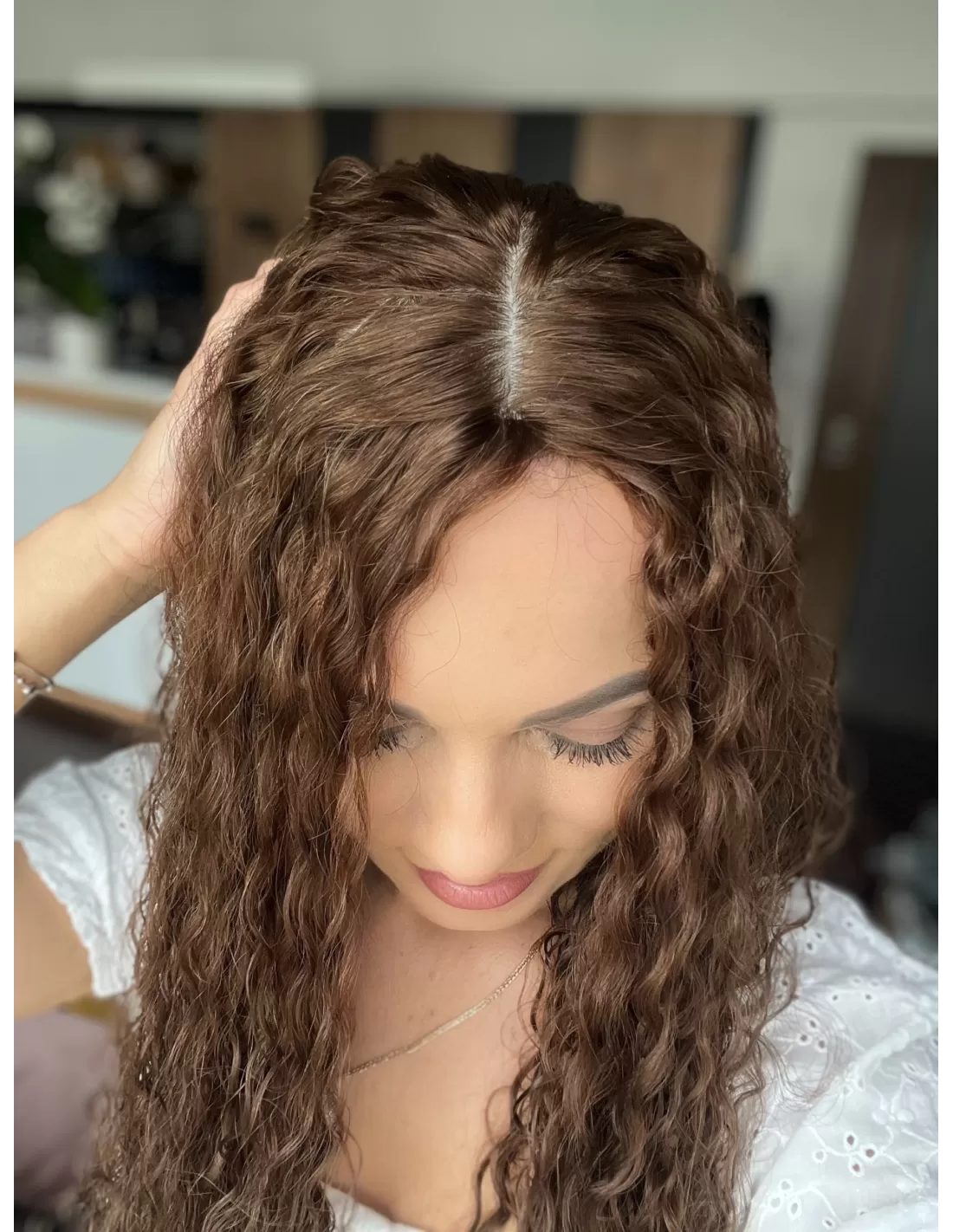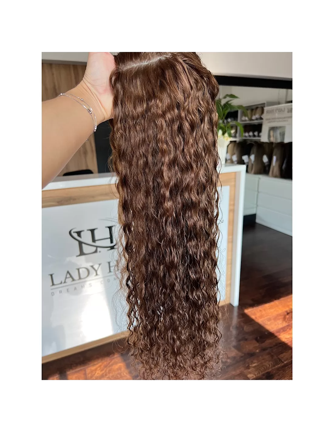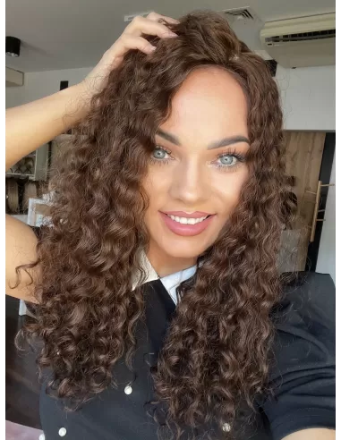 Topper Maya wykonany został z naturalnych włosów europejskich o teksturze kręconej. Jest to idealne rozwiązanie dla tych, którzy pragną stylowego wyglądu z subtelnym urozmaiceniem. Jego miękkie e krętki dodają objętości i lekkości, podkreślając jednocześnie elegancję. Włosy w kolorze naturalnego średniego brązu w ciepłym odcieniu nadają całemu lookowi harmonijności, tworząc efektowny kontrast z subtelnymi i uroczymi loczkami..