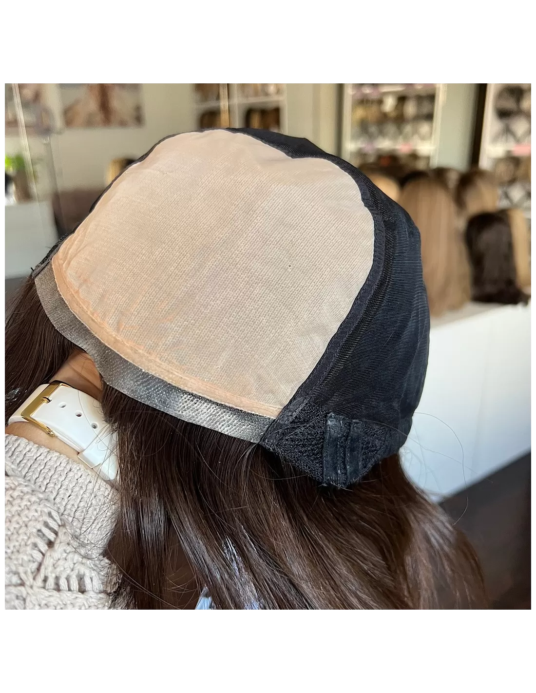 Ila K2 z grzywką+mikroskóra-Krótka peruka z włosów naturalnych