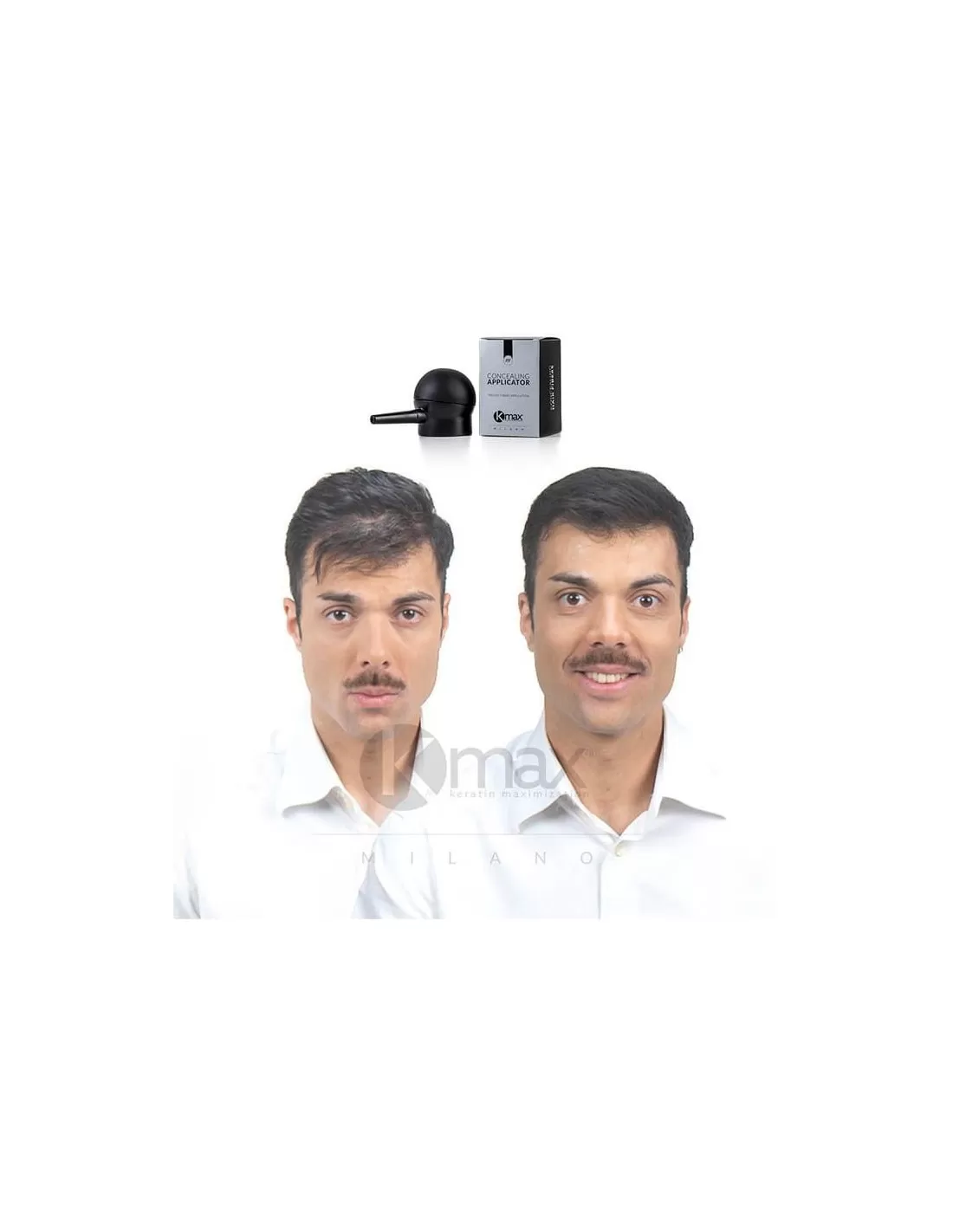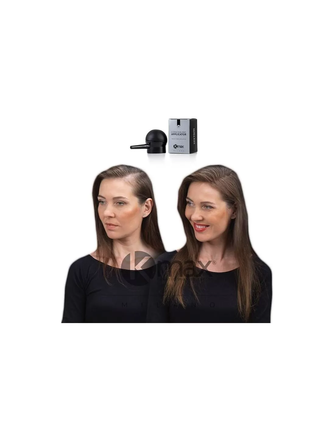 - Wstrząśnij kilkukrotnie opakowaniem z Mikrowłóknami Kmax aby pobudzić włókna keratynowe elektrostatycznie.