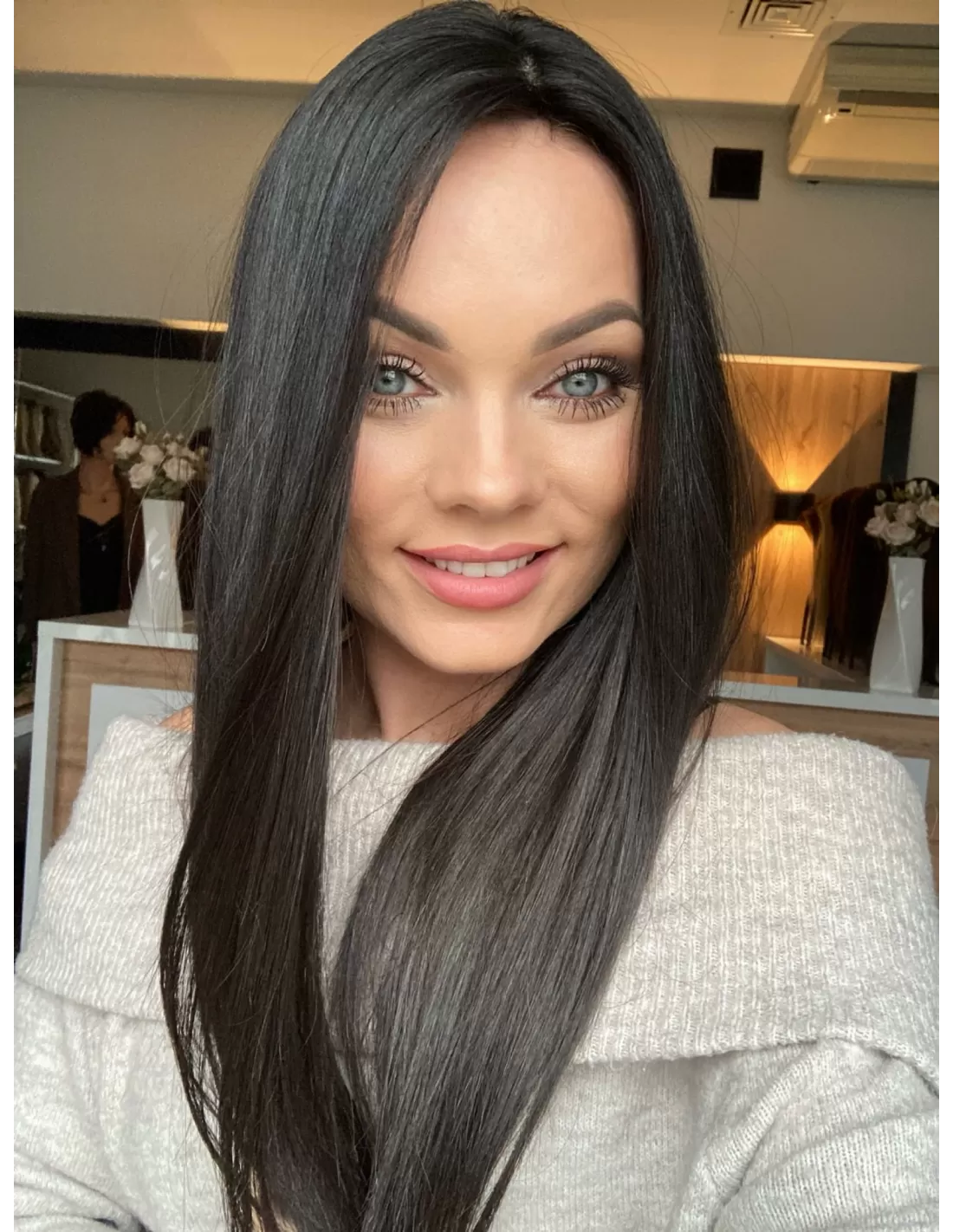 Topper INA wykonany jest z włosów naturalnych o najwyższej jakości. To idealne rozwiązanie dla osób pragnących uzyskać pełny, gęsty i naturalny wygląd swoich włosów. Jego kolor to bardzo ciemny brąz (#1B ), co zapewnia elegancki i głęboki wygląd.