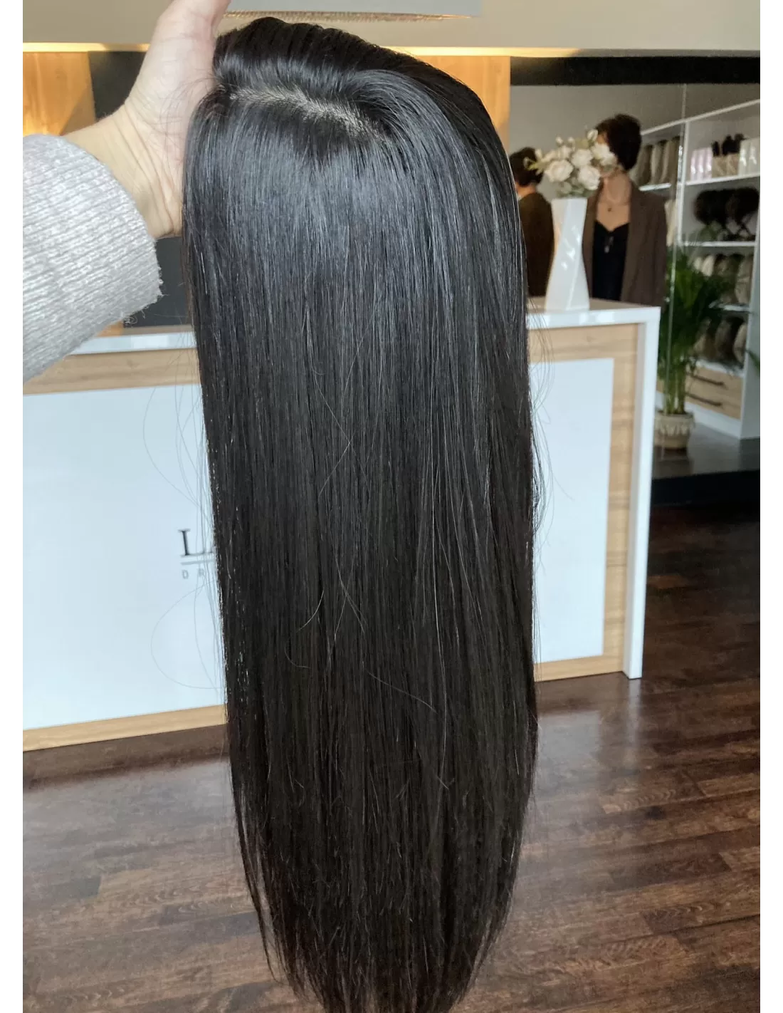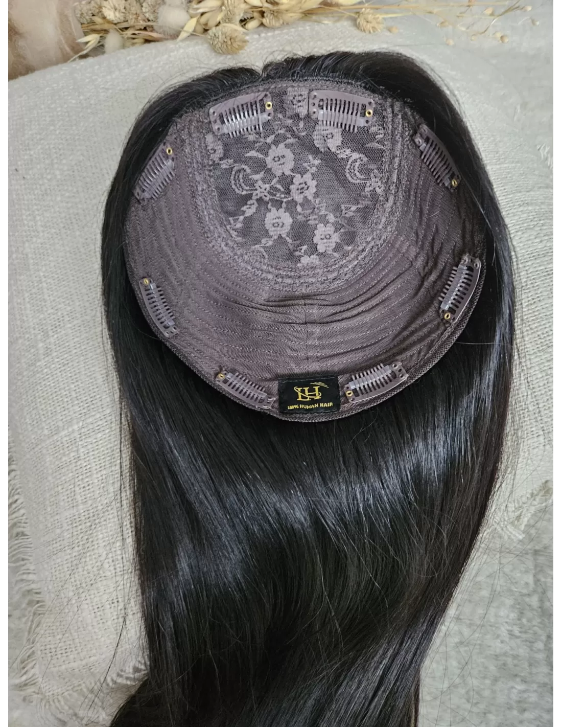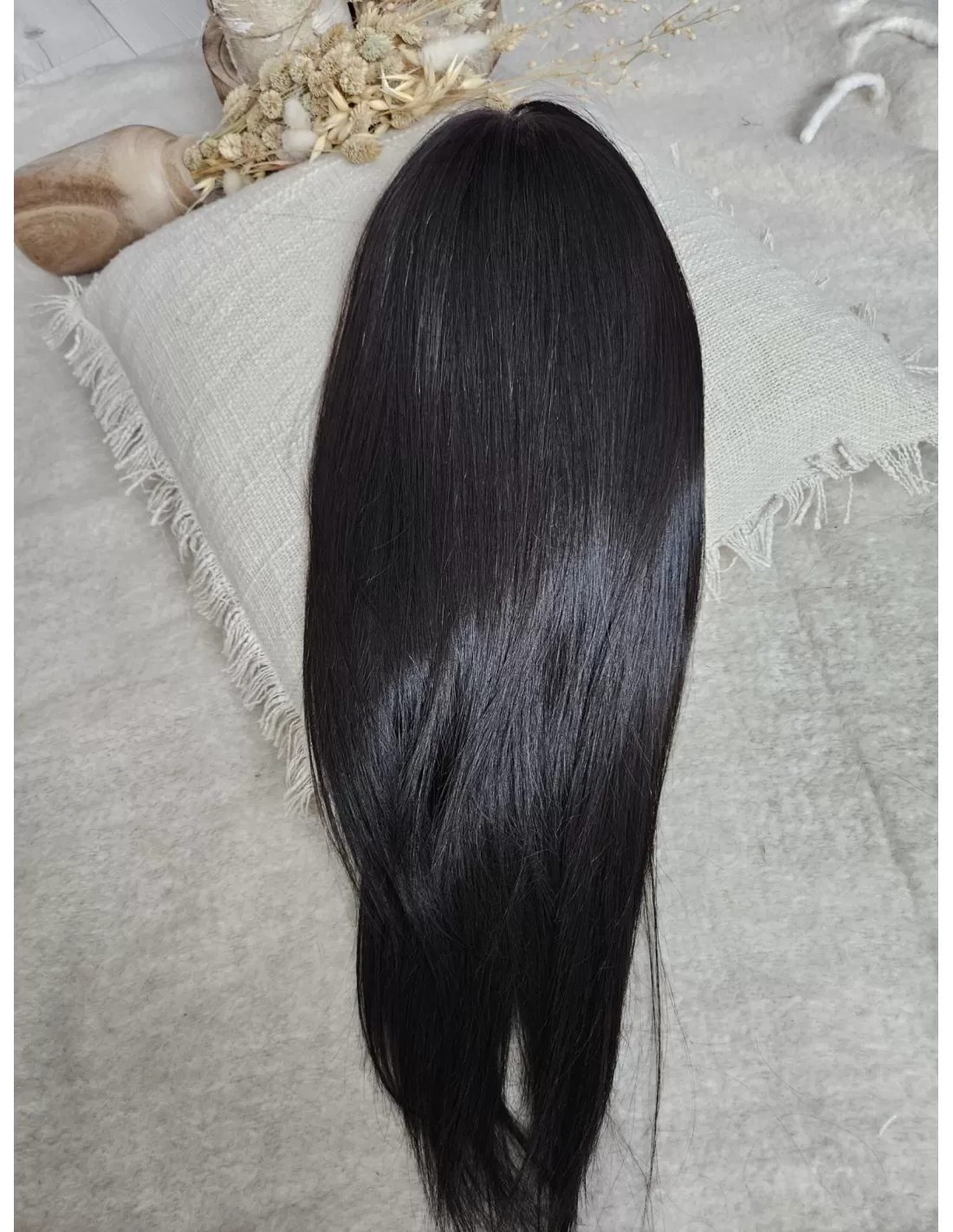 Topper FREYA wykonany jest z włosów naturalnych o najwyższej jakości. To idealne rozwiązanie dla osób pragnących uzyskać pełny, gęsty i naturalny wygląd swoich włosów. Jego kolor to bardzo ciemny brąz (#1B black), co zapewnia elegancki i głęboki wygląd.