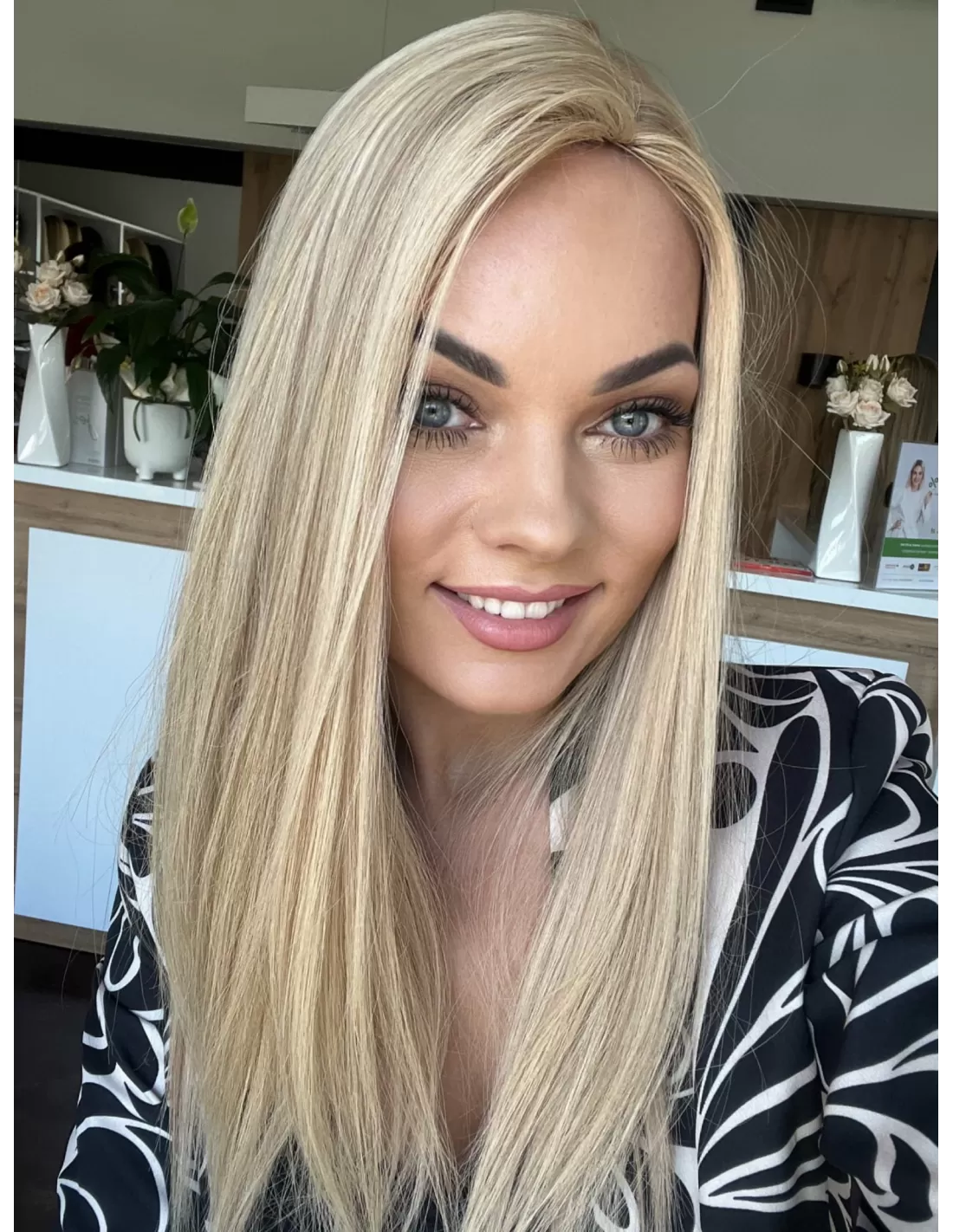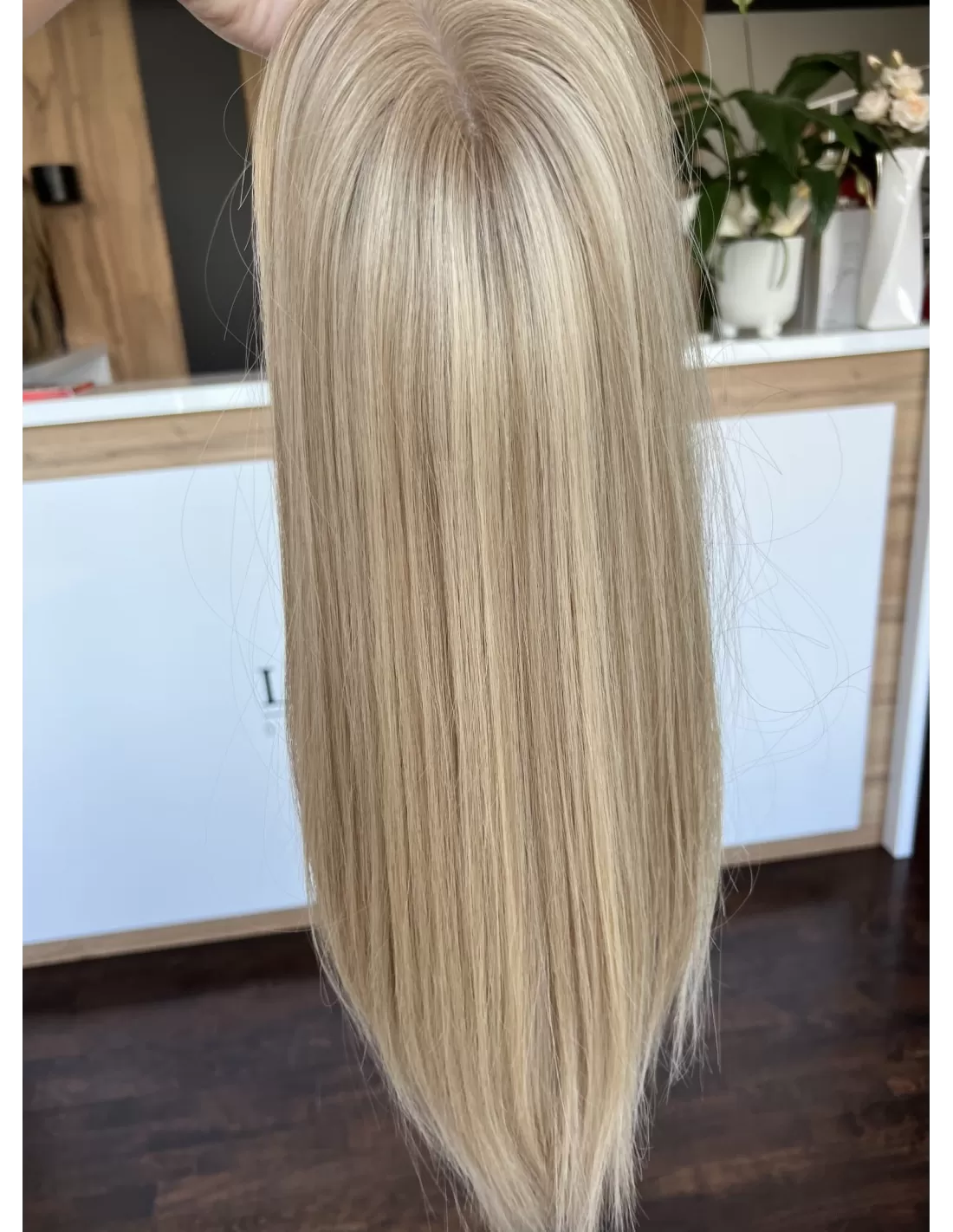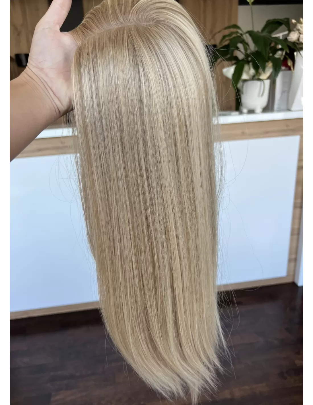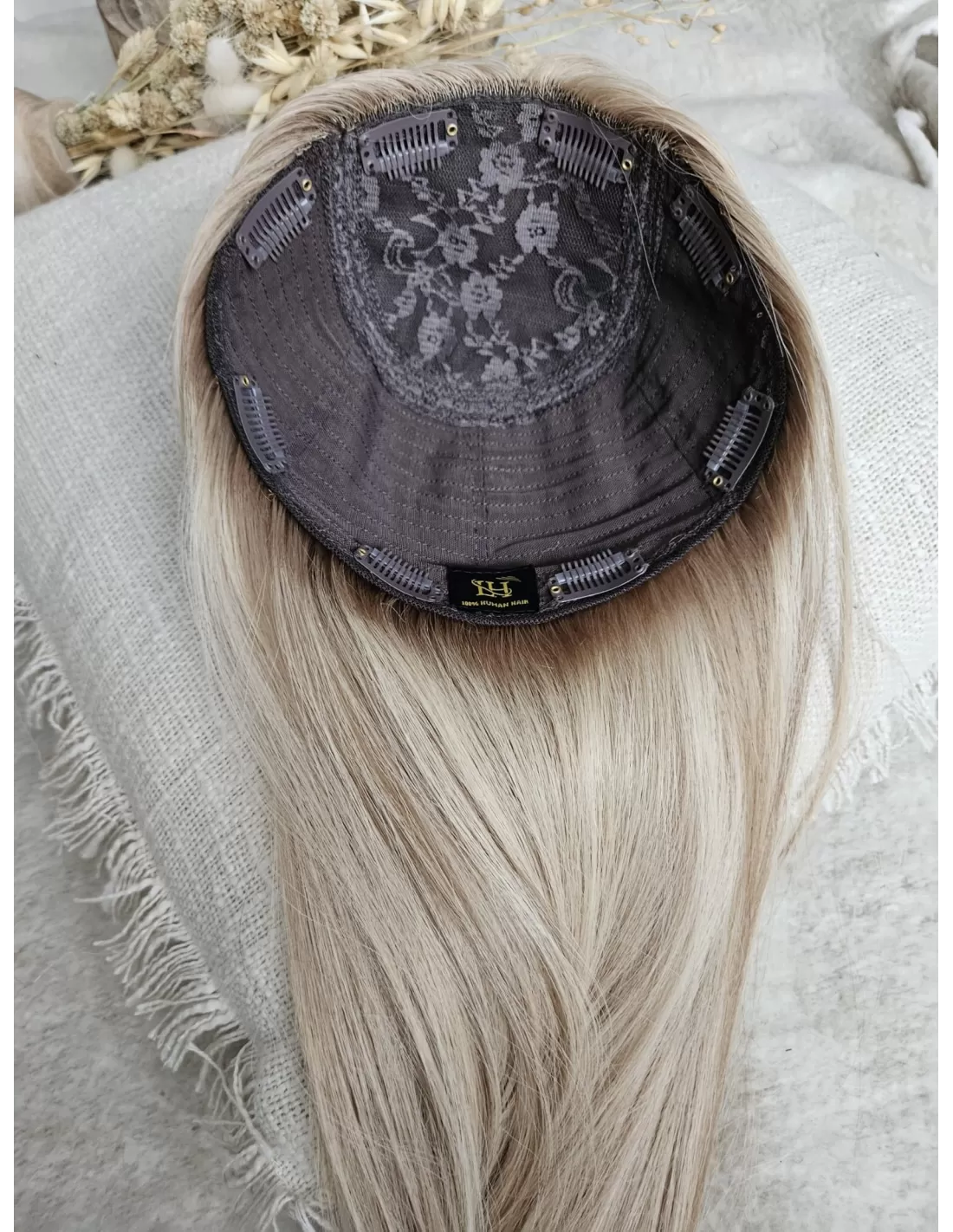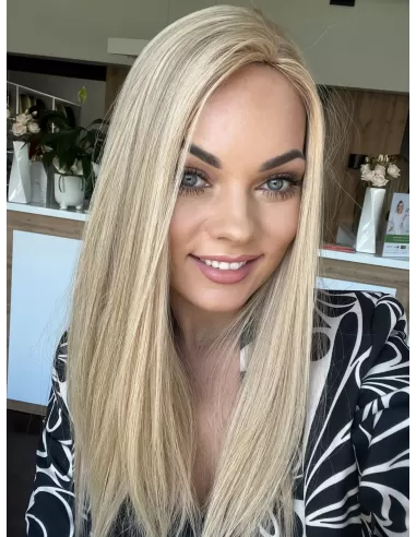 Topper Wilma to niezwykła eksplozja naturalnego piękna, stworzona z najwyższej jakości włosów. Jego blond kryje w sobie subtelną magię beżowego baleyage, która dodaje fryzurze subtelnego blasku. Odrost w odcieniu delikatnego chłodnego blondu to nie tylko delikatny kontrast, ale także wyraz elegancji.